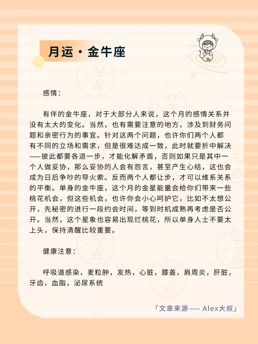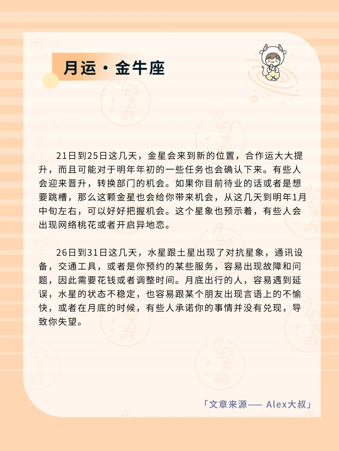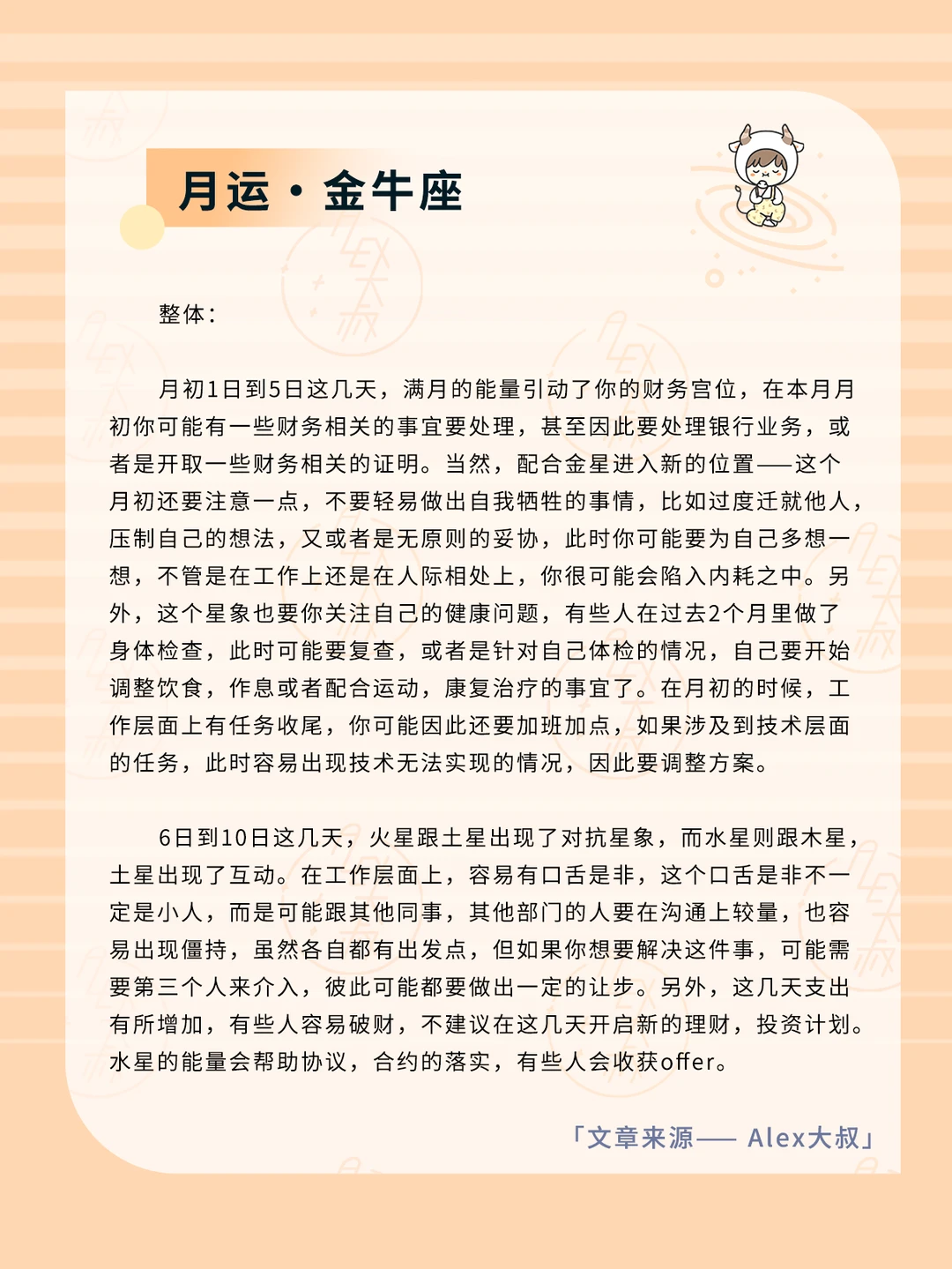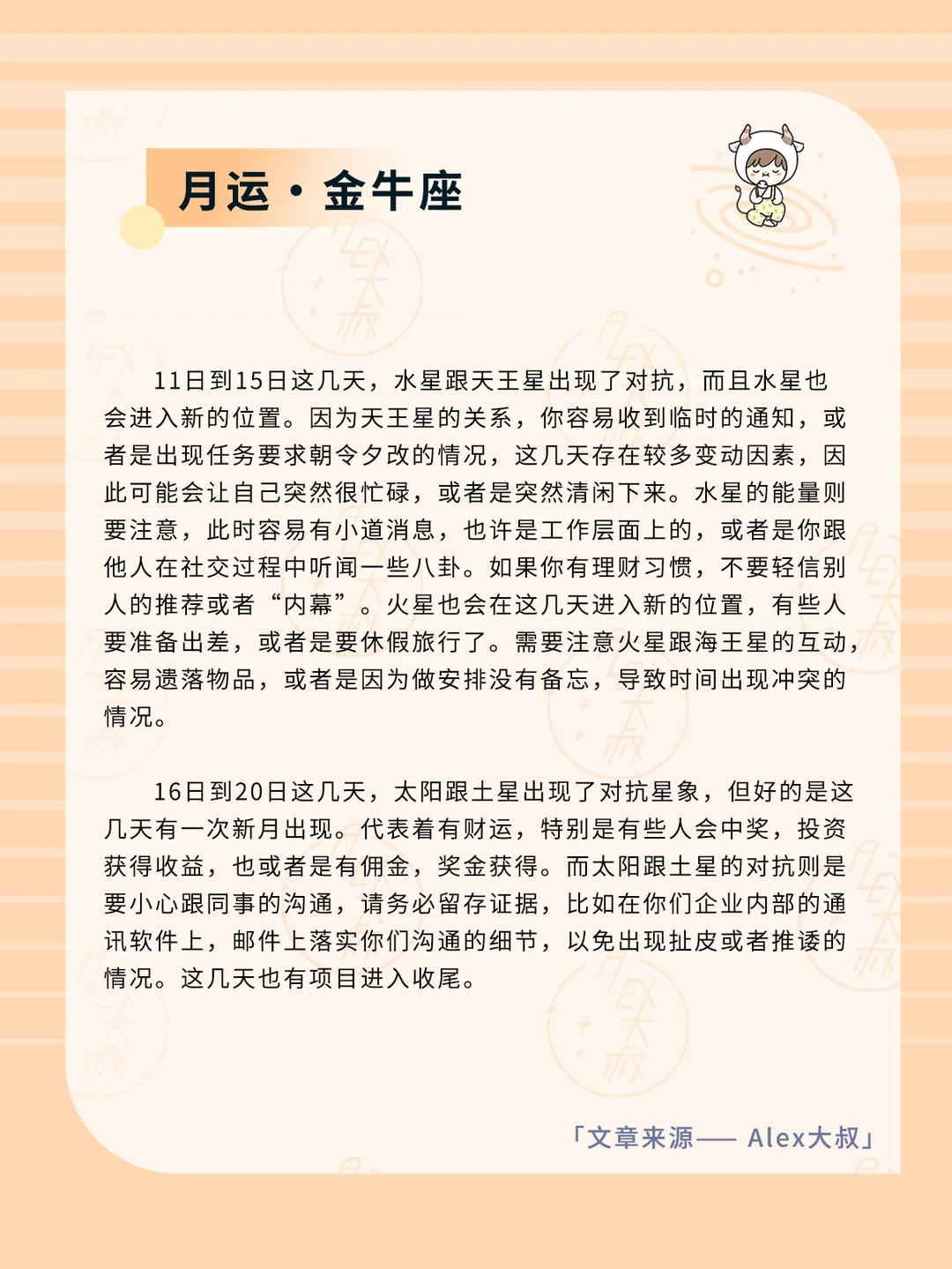 ALEX大叔 我的星座 星座运势 白羊座运势 金牛座运势