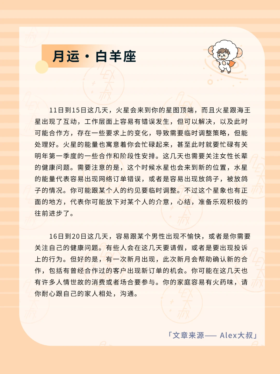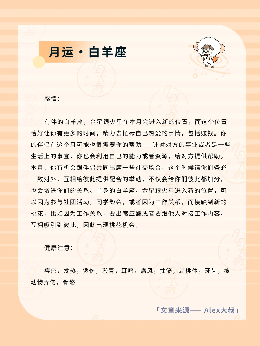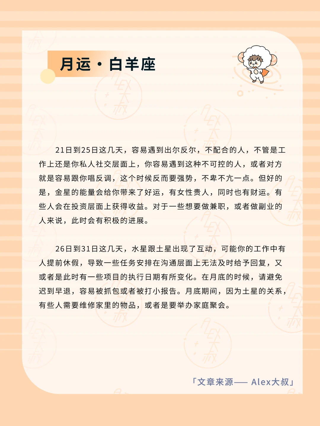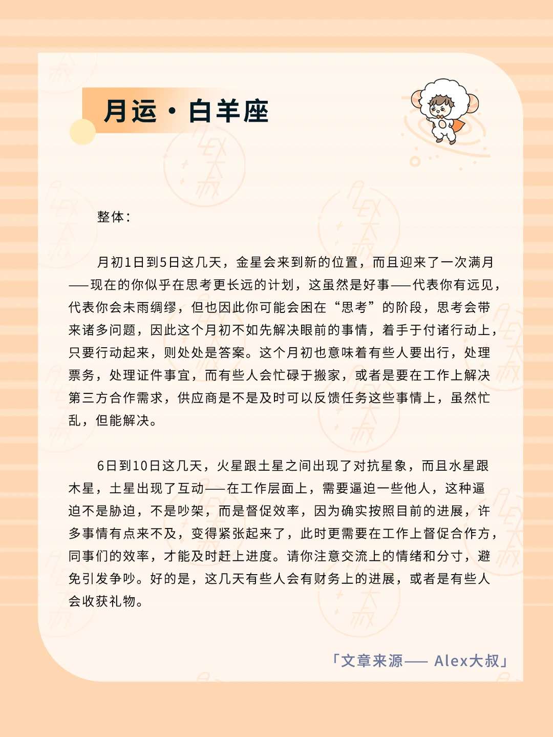 ALEX大叔 我的星座 星座运势 白羊座运势 金牛座运势