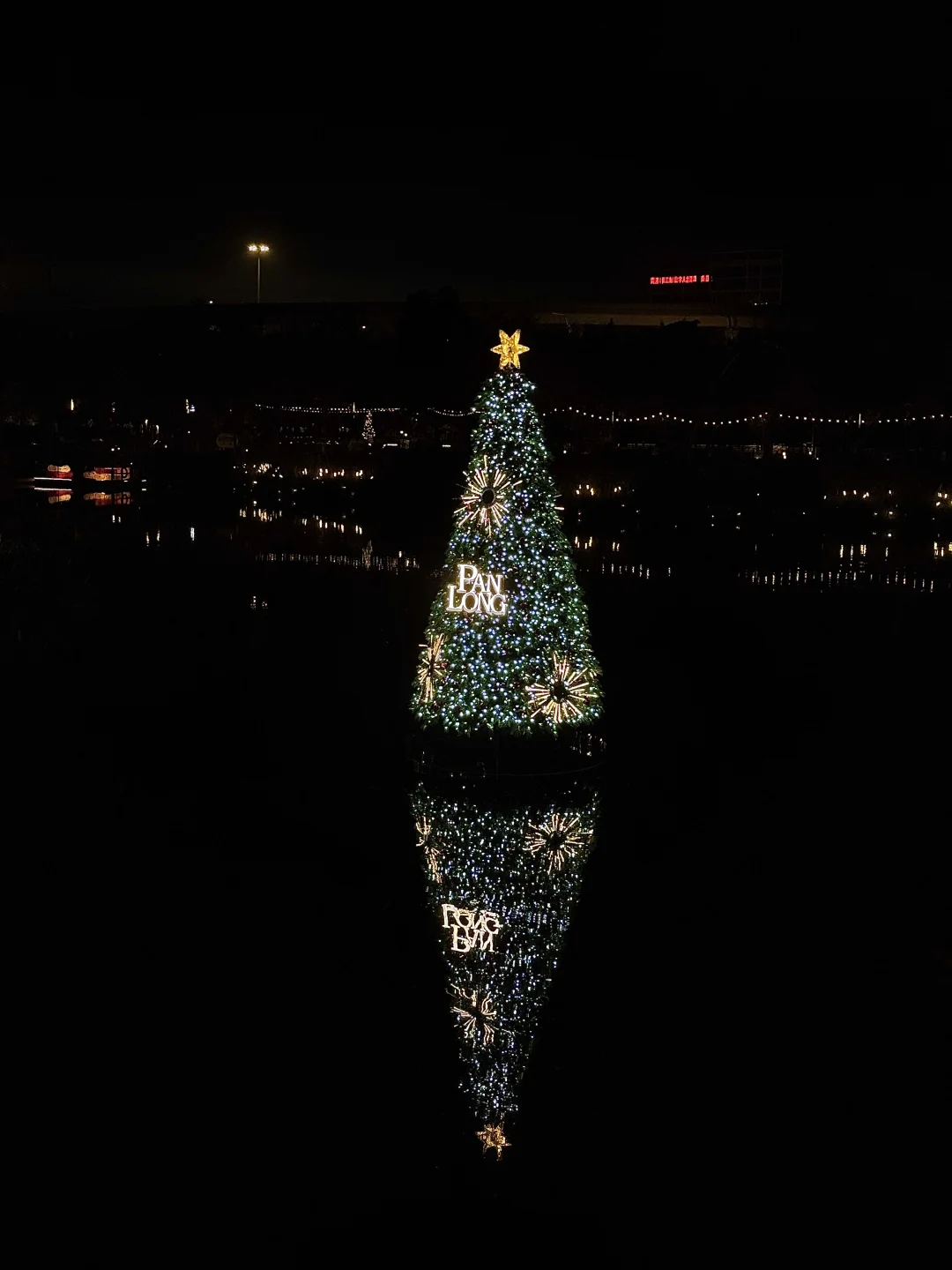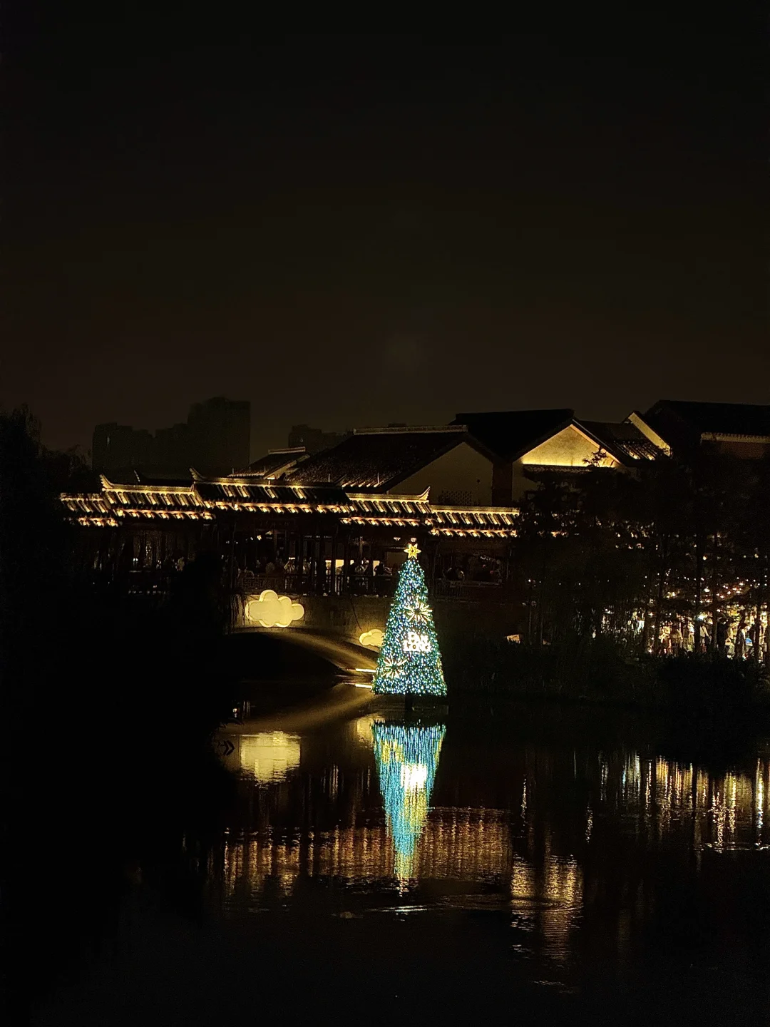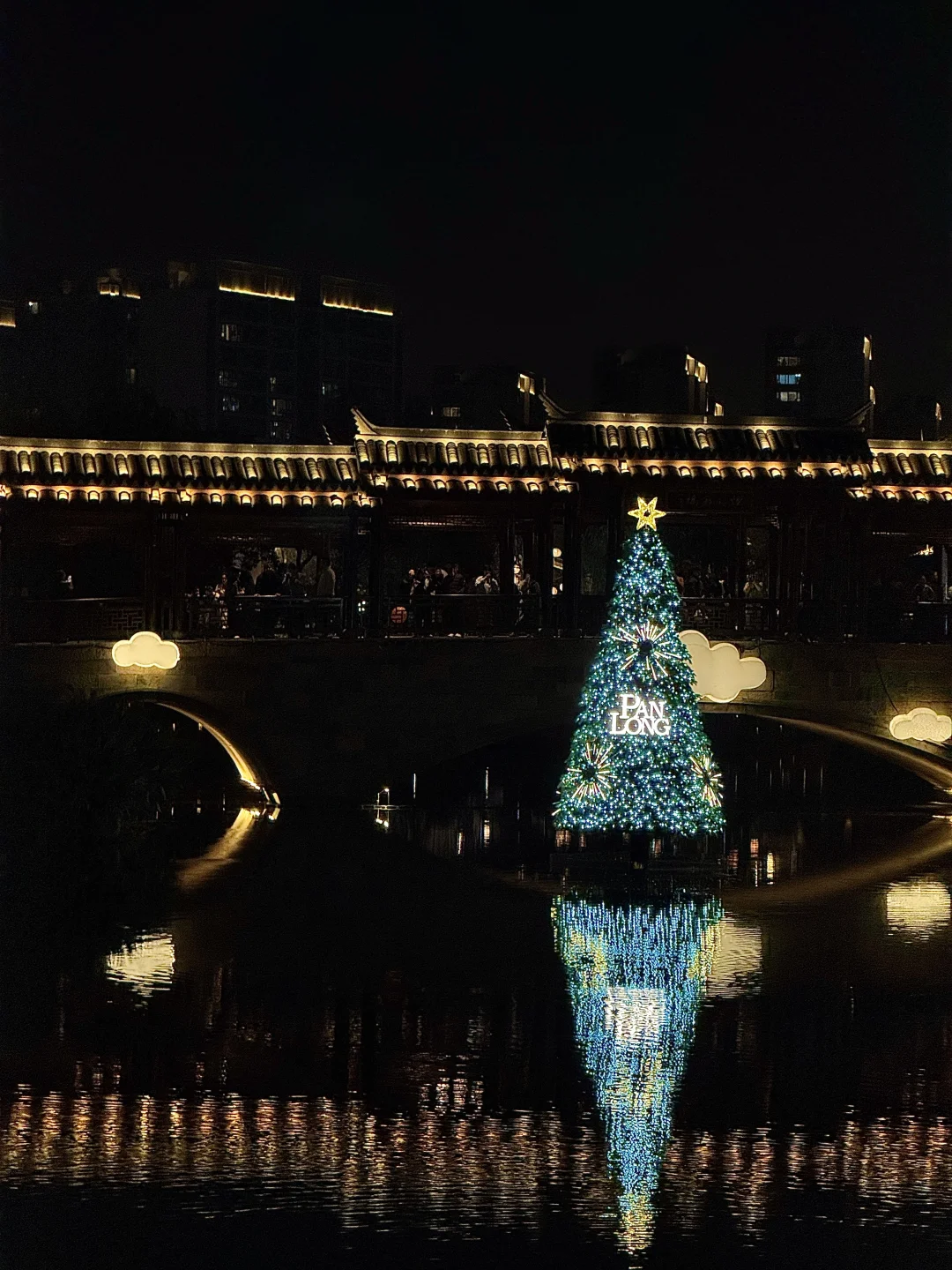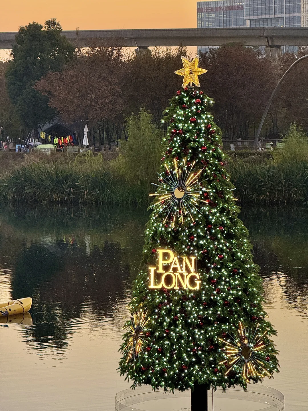 在上海!蟠龙新天地!沪上独一份水上圣诞树🎄太有意境了🫶 - ⏳即日起-26.1.11 📷夜幕降临时有晚霞就会非常完美 🚇17号线蟠龙站 🅿️停车场很大,8元/小时(消费可积分抵扣) 🐈🐶宠物友好 整个蟠龙新天地圣诞浓度非常高,市集、餐饮、小鹿、滑冰⛸️、超市…可逛性可拍照性都很强💗