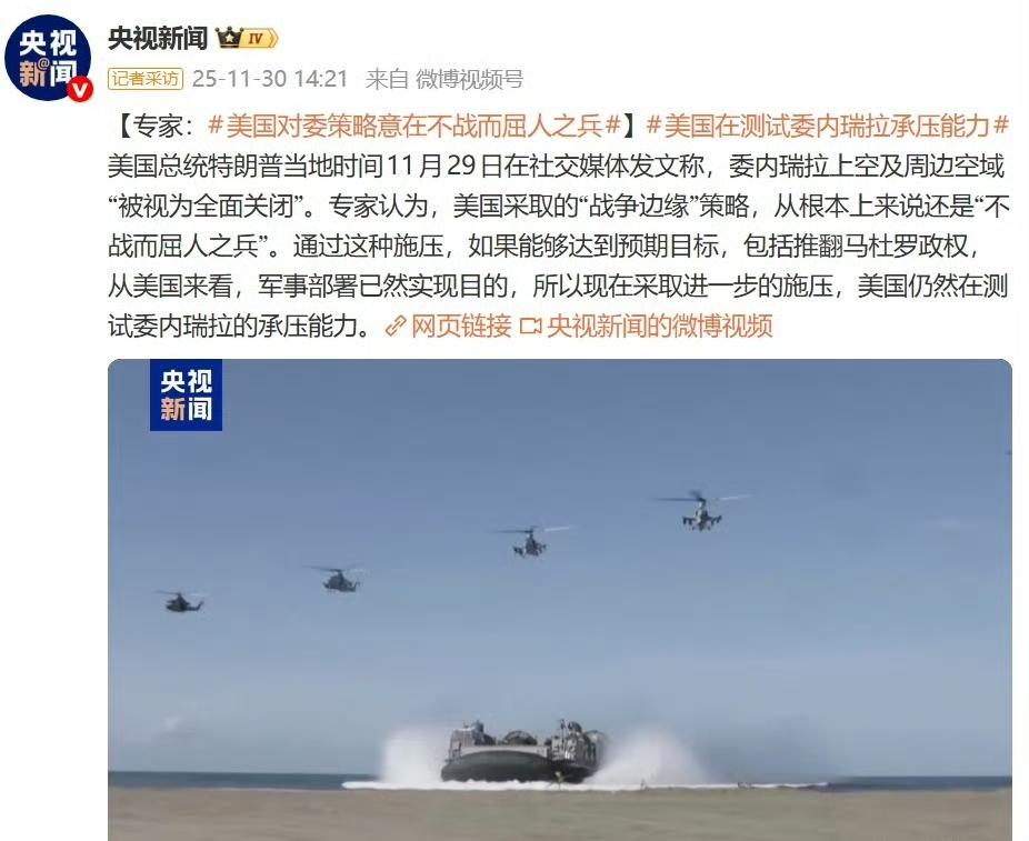 说实话,最近琢磨美国对委内瑞拉的那套操作,越想越觉得有意思,表面上喊着各种口号,搞着所谓的“不战而屈人之兵”,说到底,不还是仗着自己家底厚、拳头硬,想拿捏人家南美洲这个中小国家嘛。 美国的综合国力有多能打,军事实力有多强横,这在全球都是公认的。可手里握着这么好的牌,不拿来好好搞合作、促共赢,反倒盯着委内瑞拉这样的国家,耍起了霸权那一套。这操作,真的让人挺费解的。 我有时候会忍不住想,国与国之间的交往,难道真的跟动物界一样,没什么道理可讲吗?弱肉强食,你弱小就活该被拿捏,你强大就能随便制定规则。这话听着残酷,但回头看看美国的这些所作所为,好像又不得不承认,过去是这样,现在是这样,未来怕是也很难彻底改变。 你想想看,委内瑞拉在南美洲安安稳稳过日子,碍着谁了?可美国偏偏就盯着人家不放,不用真刀真枪的战争,却用各种看不见的手段施压、围堵,想着让对方乖乖顺从。这哪里是什么高明的策略,分明就是霸权主义的赤裸裸体现啊! 咱们常说“得道多助,失道寡助”,可在绝对的实力差距面前,这些道理有时候好像都显得轻飘飘的。但话又说回来,靠着强权压制,就算暂时达到了目的,真的能长久吗?那些被欺负的国家,那些看在眼里的旁观者,心里又会怎么想? 说到底,美国这一套“不战而屈人之兵”,不过是给自己的霸权行为裹了一层看似体面的外衣。剥开这层壳,里面藏着的,还是弱肉强食的老规矩。大家觉得,这样的霸权逻辑,真的能一直横行下去吗?