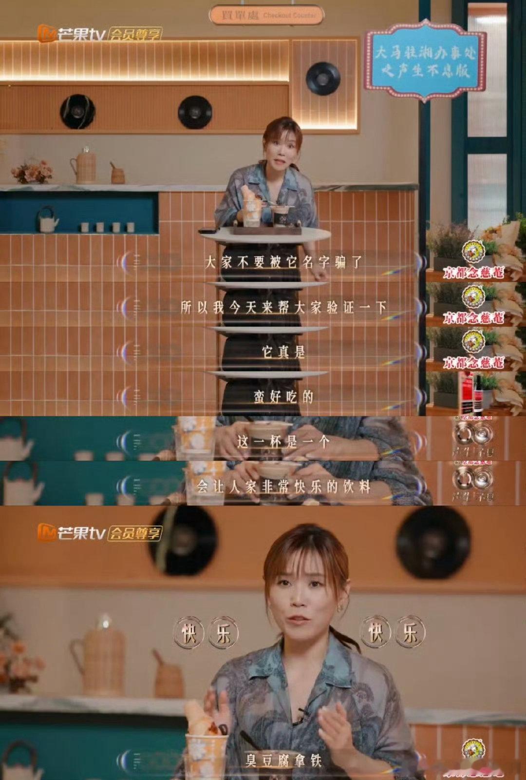 李佳薇喝臭豆腐拿铁的反应 声生不息 瞧李佳薇喝臭豆腐拿铁,入口瞬间五官皱成“小包子”,嫌弃都快变成小乌云。可没过一会儿就变脸,说味道还行。这从抗拒到真香的反转,就像一场奇妙魔法秀,她就是黑暗料理的推广小达人!李佳薇