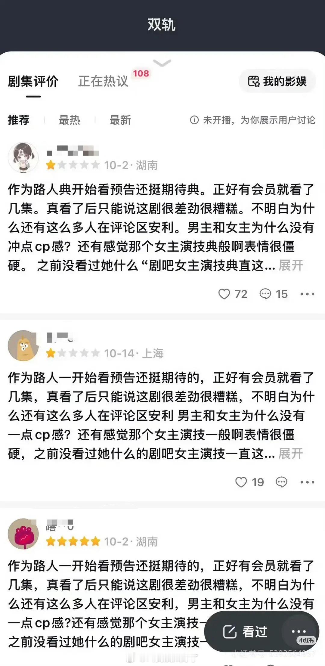 《双轨》还没有播就先迎来了第一波一星差评🙉