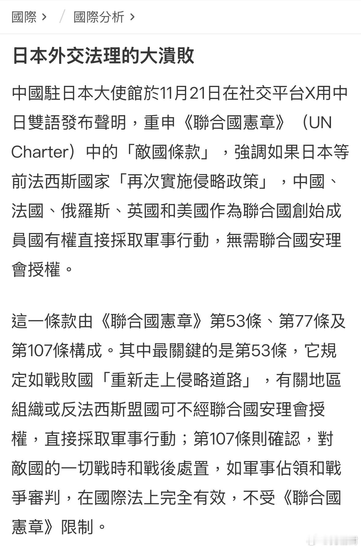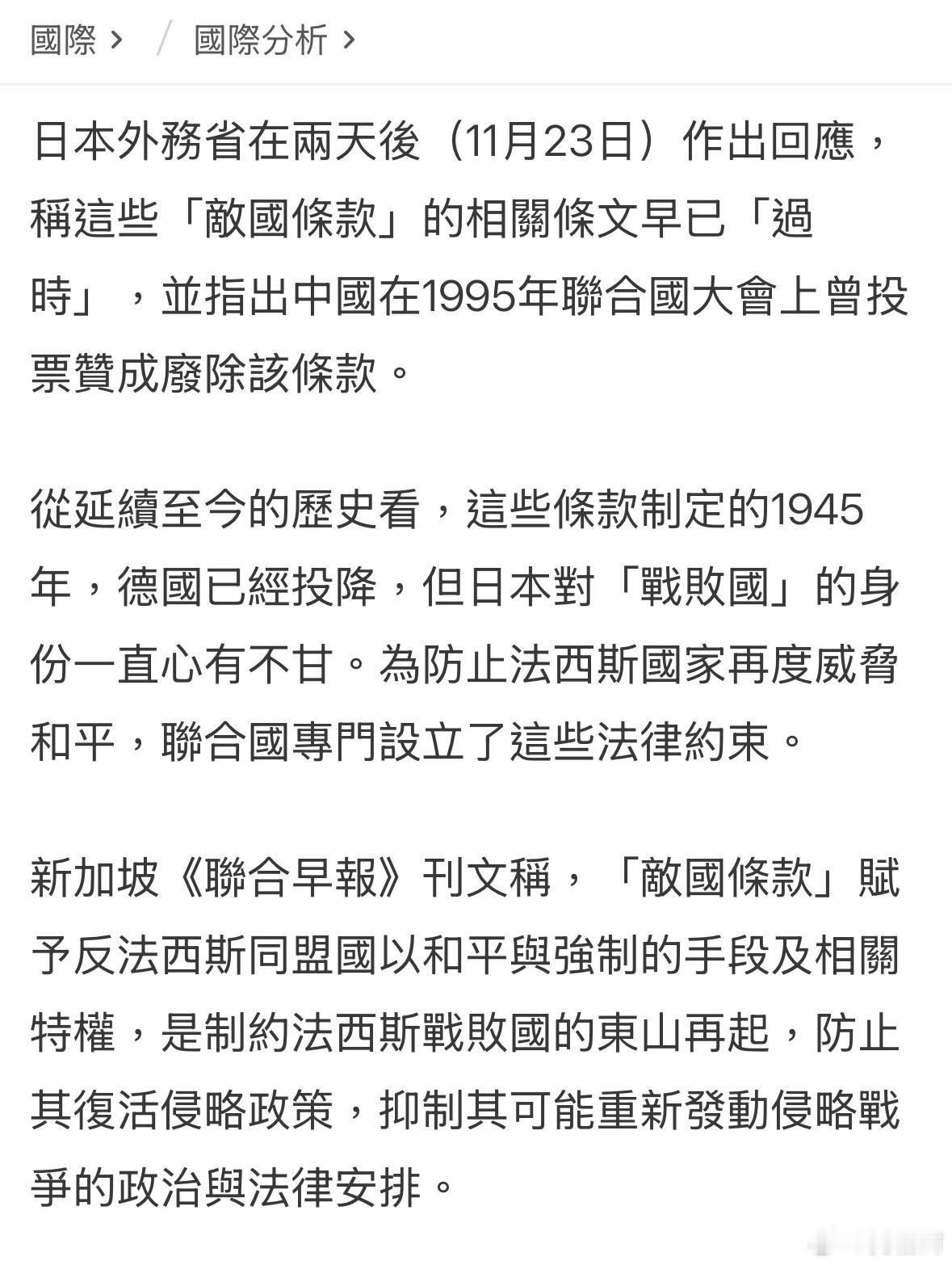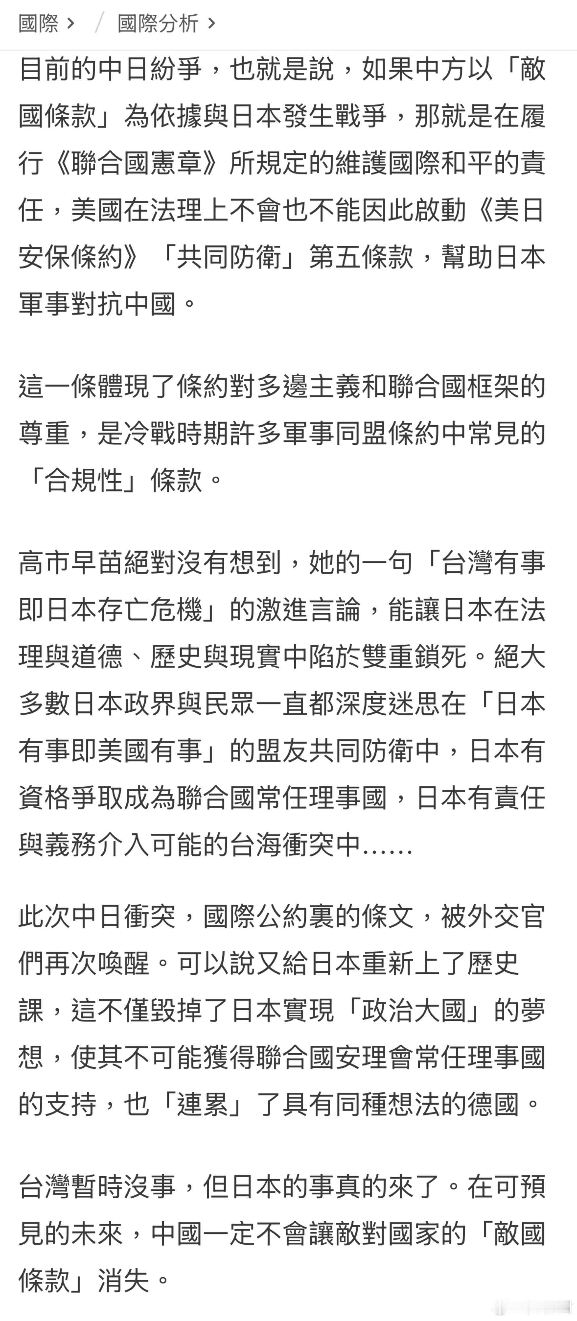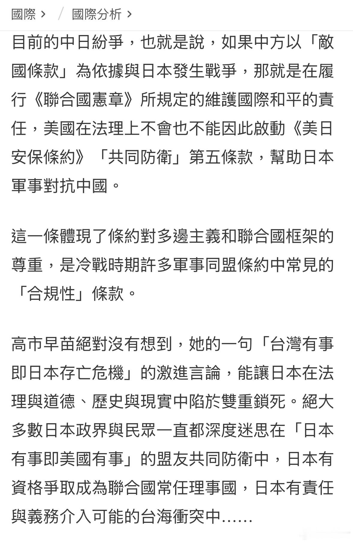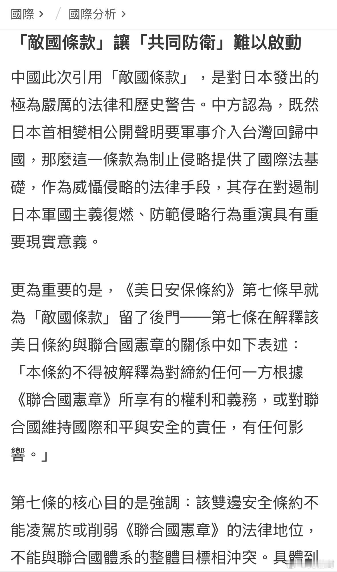 「敌国条款」成梦魇——美国协防日本法理已不存日本现职领导人悖逆潮流撞上南墙台湾没