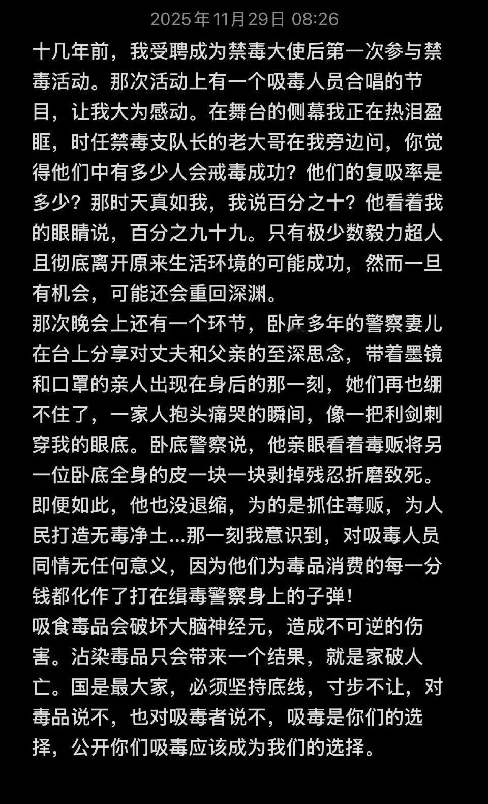 禁毒大使发声了!三观非常正!不愧是禁毒大使!这样的三观,才能对得起禁毒高危岗位上的每一位工作人员!
