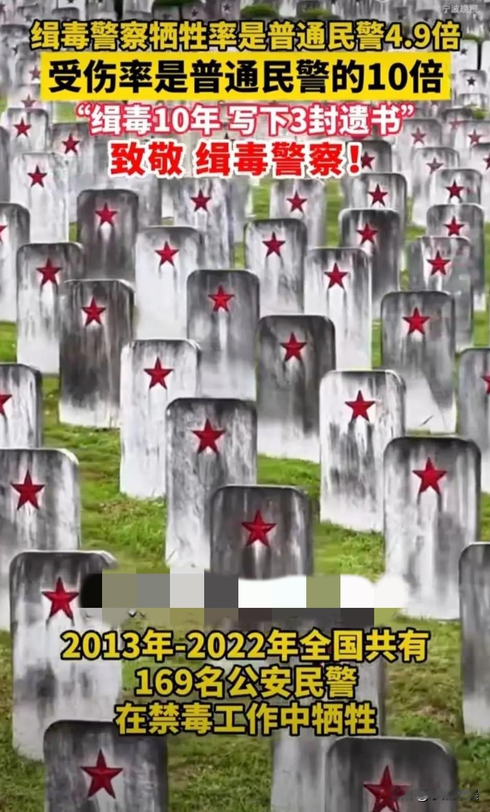 缉毒十年! 写下3封遗书, 这大概就是最危险的职业了吧。 缉毒警察牺牲率是普通民警的4.9倍,受伤率是普通民警的10倍,数据不会说谎,10年写下3封遗书,可见缉毒警察真的是在用生命工作。 我们无法替那些献出生命的缉毒警察,去原谅那些瘾君子。