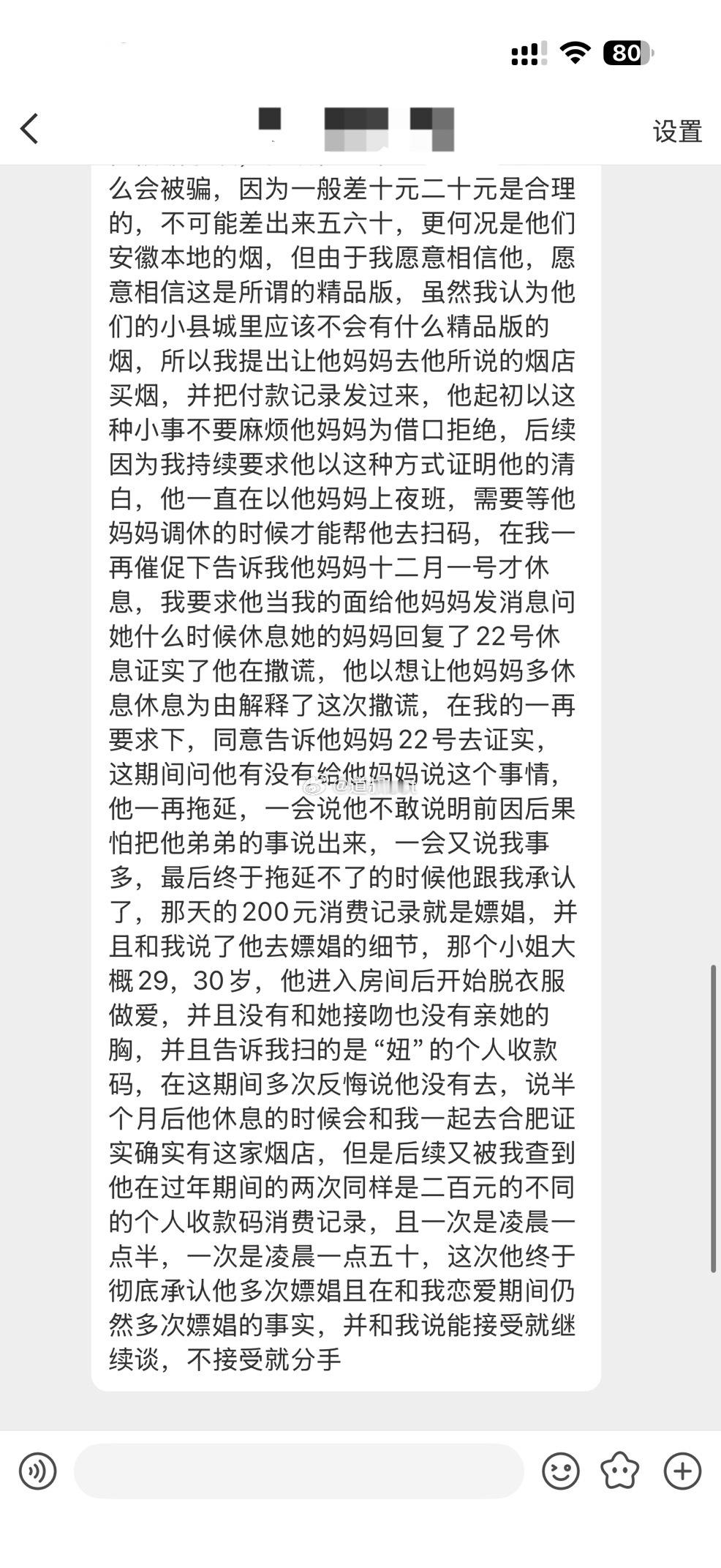 网友爆料,男朋友在和我恋爱期间嫖娼,撒谎成性。