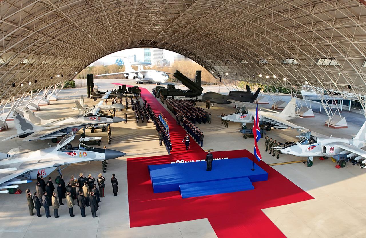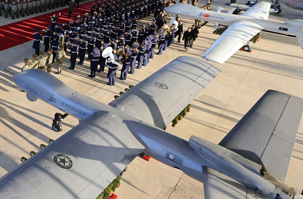 在11月28日朝鲜人民军空军成立80周年庆祝活动上,朝鲜空军展示一系列新型武器装备和现役最好战机。朝鲜空军首次展示朝鲜版“金牛座”空射巡航导弹(图2-4,也可能是反跑道集束巡航导弹)、新型制导弹药以及新型短程红外导引空空导弹(图5-7),以上这些新型弹药由朝鲜苏25攻击机挂载。朝鲜人民军空军还展示了两种型号的新型“流星”地对空防空导弹(图8-9),两种新型号的察打一体无人机(图10-11),以及朝鲜版“全球鹰”斯密达无人机和朝鲜自行研发的预警机(图1)。