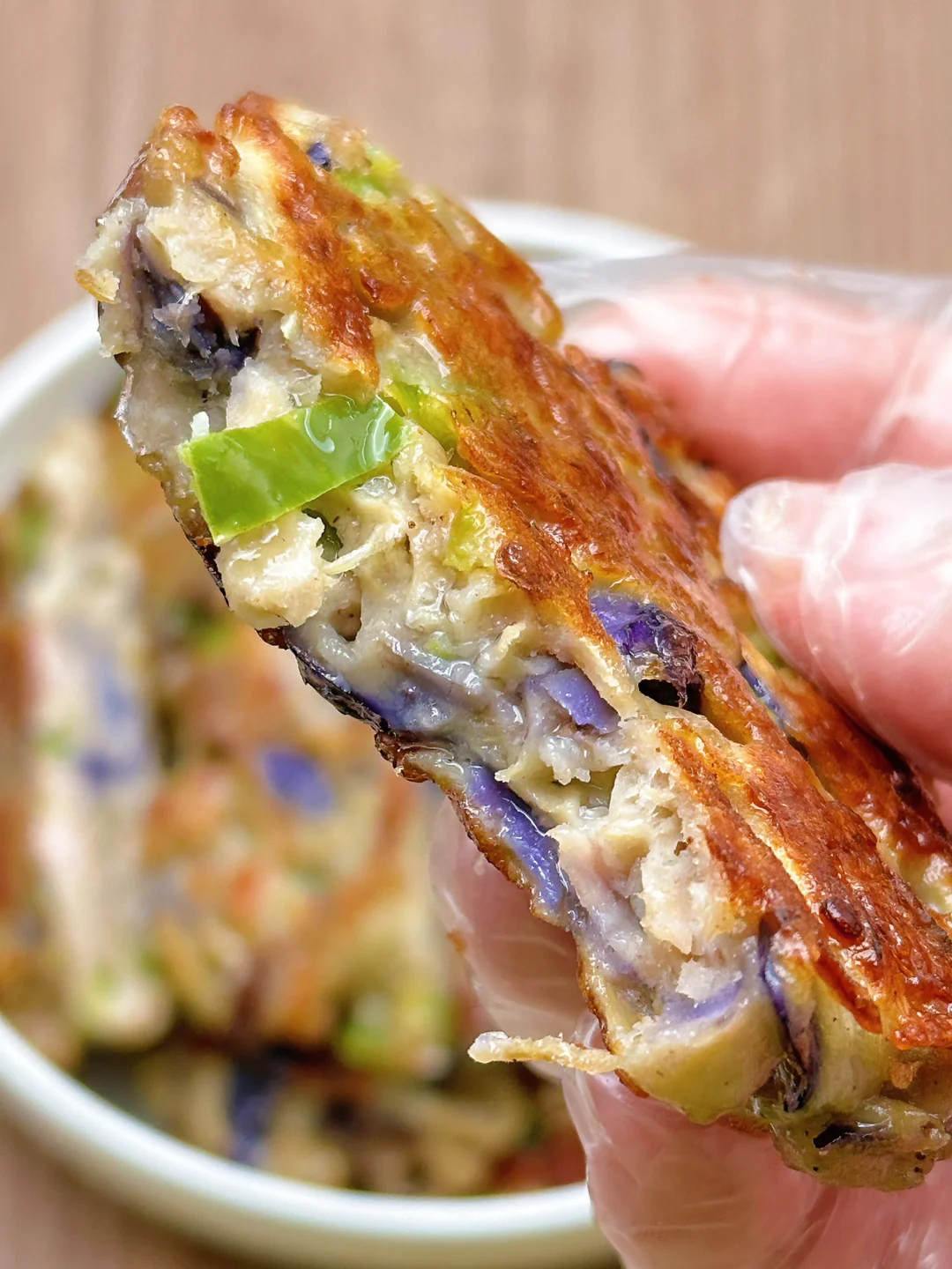 香嫩的茄子肉饼真的是香迷糊啦!上次做的茄子鸡蛋饼,姐妹们都在说加肉会更好吃,所以我这次来做了,巨巨巨好吃,外酥里嫩,而且营养美味,一口咬下去软糯香嫩,味道真的爱了,而且热量也不高,对减脂期的姐妹很有好,真的好吃到停不下来了!咸香美味,做法简单,姐妹们快去试试吧~全家人吃完都在夸 🥗食材:1根茄子🍆➕1个鸡蛋➕猪肉、淀粉 🥘做法:如上图集中所示~