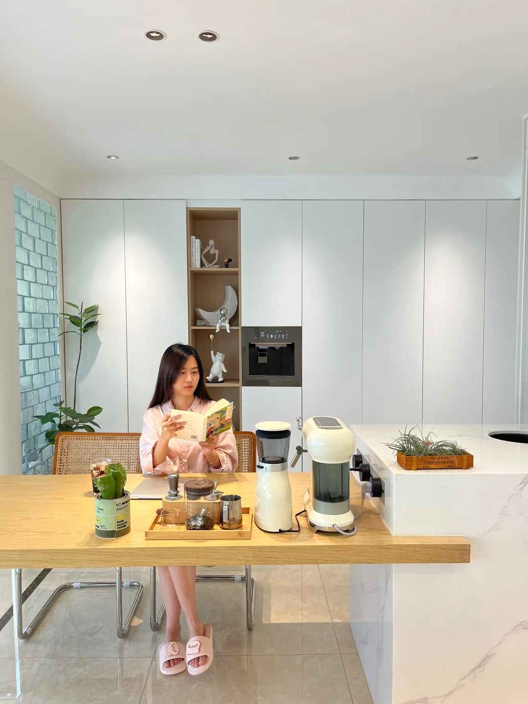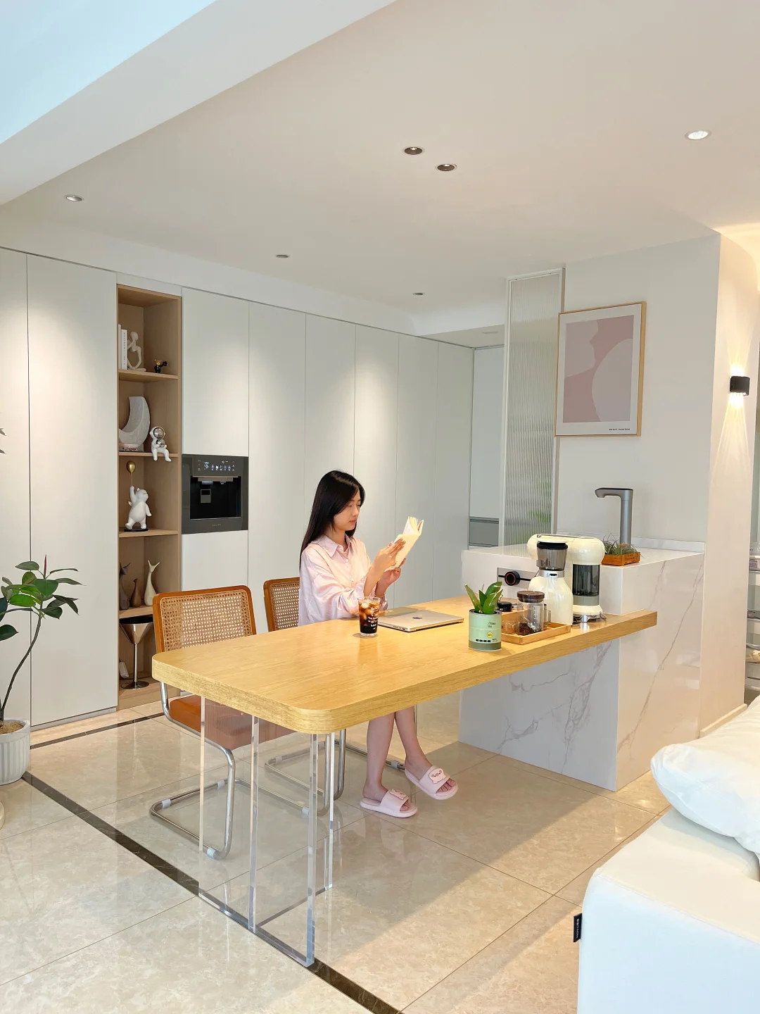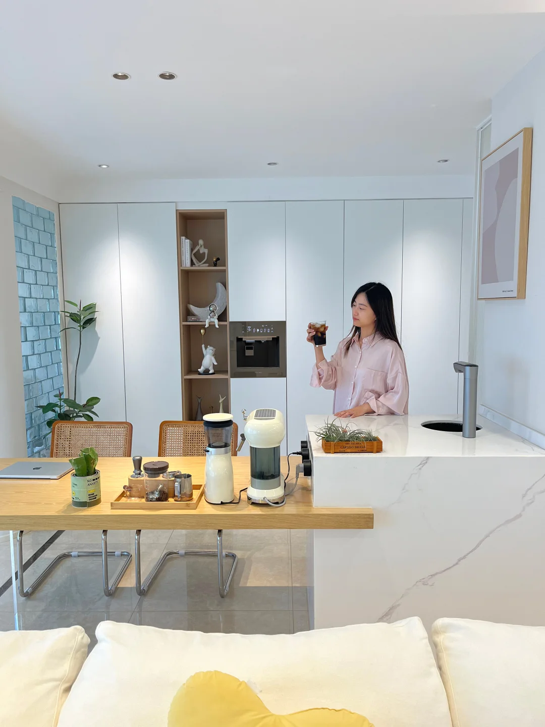 平时在这个1.8米的大桌面上办公,同时这个岛台也是我的水吧台