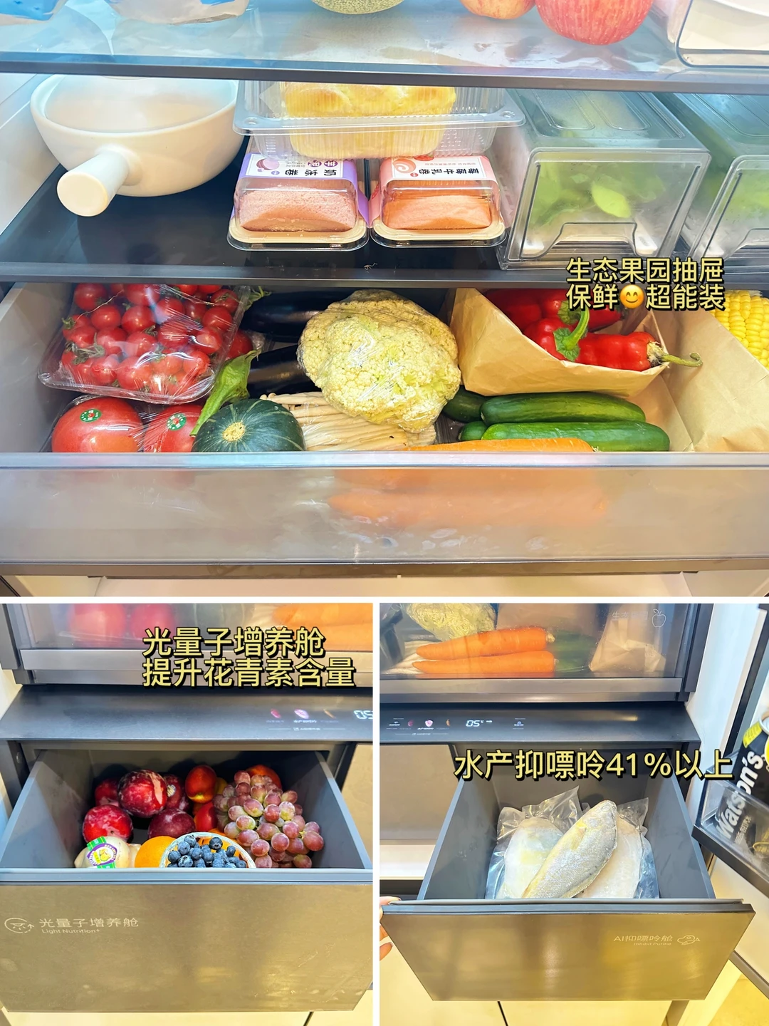 通过抽屉内感温探头,维持冰温环境,抑制水产嘌呤的增加,爱吃海鲜也不用担心痛风的风险啦!