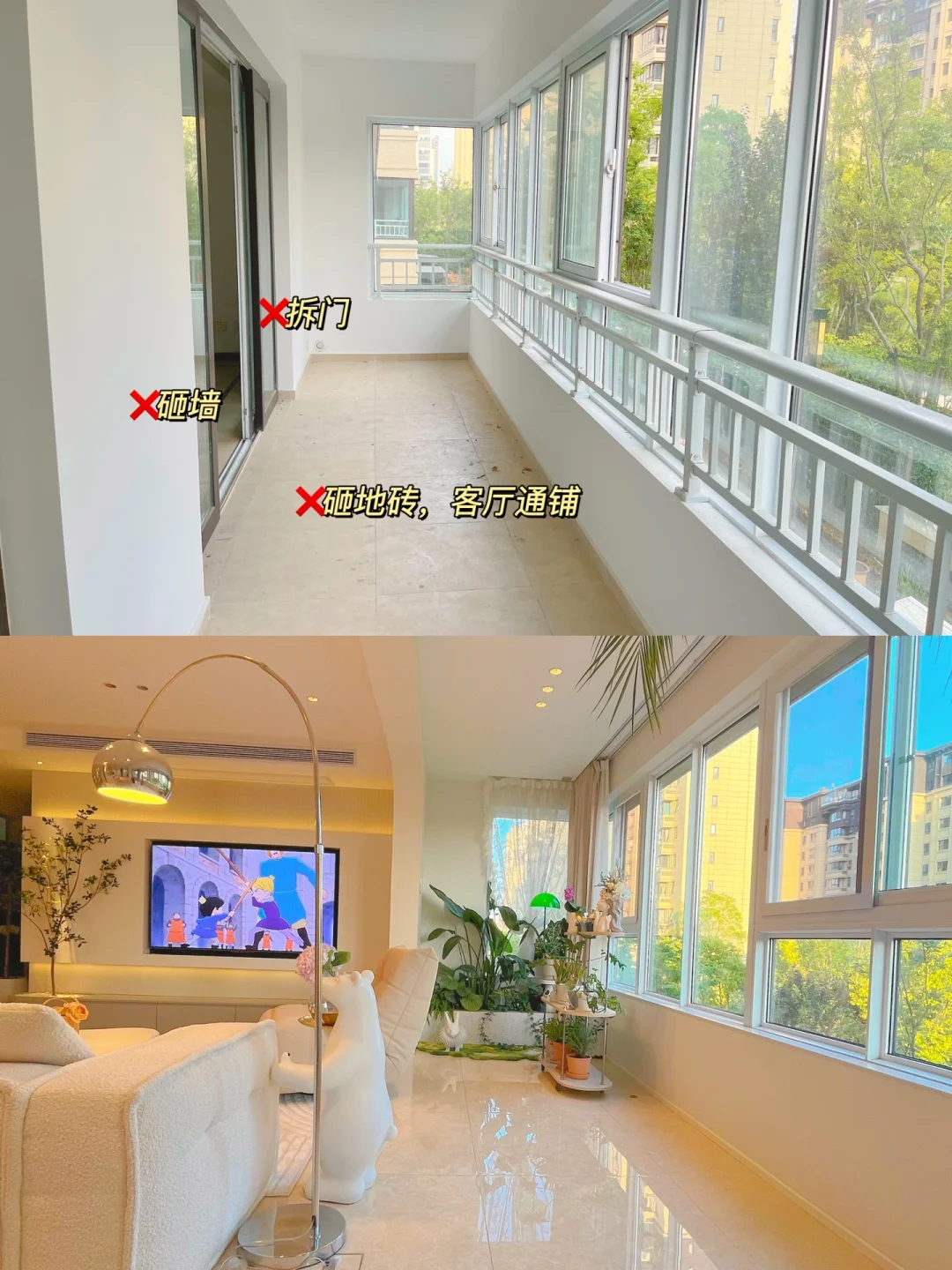 4、电视墙做了简单背景,阳台砌了花池,花了点小心思,就能呈现意想不到的效果