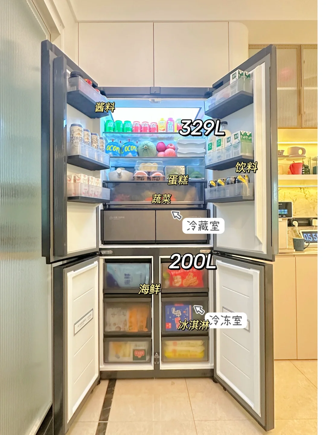 因为我家餐边柜的深度只做了600mm,一般的冰箱都会突出来不好看,这款厚度刚好600mm,加上底部洄形散热,可以做到全嵌入柜子中,而且容量还有529L!美观、大容量还节省空间,是我很满意的点。