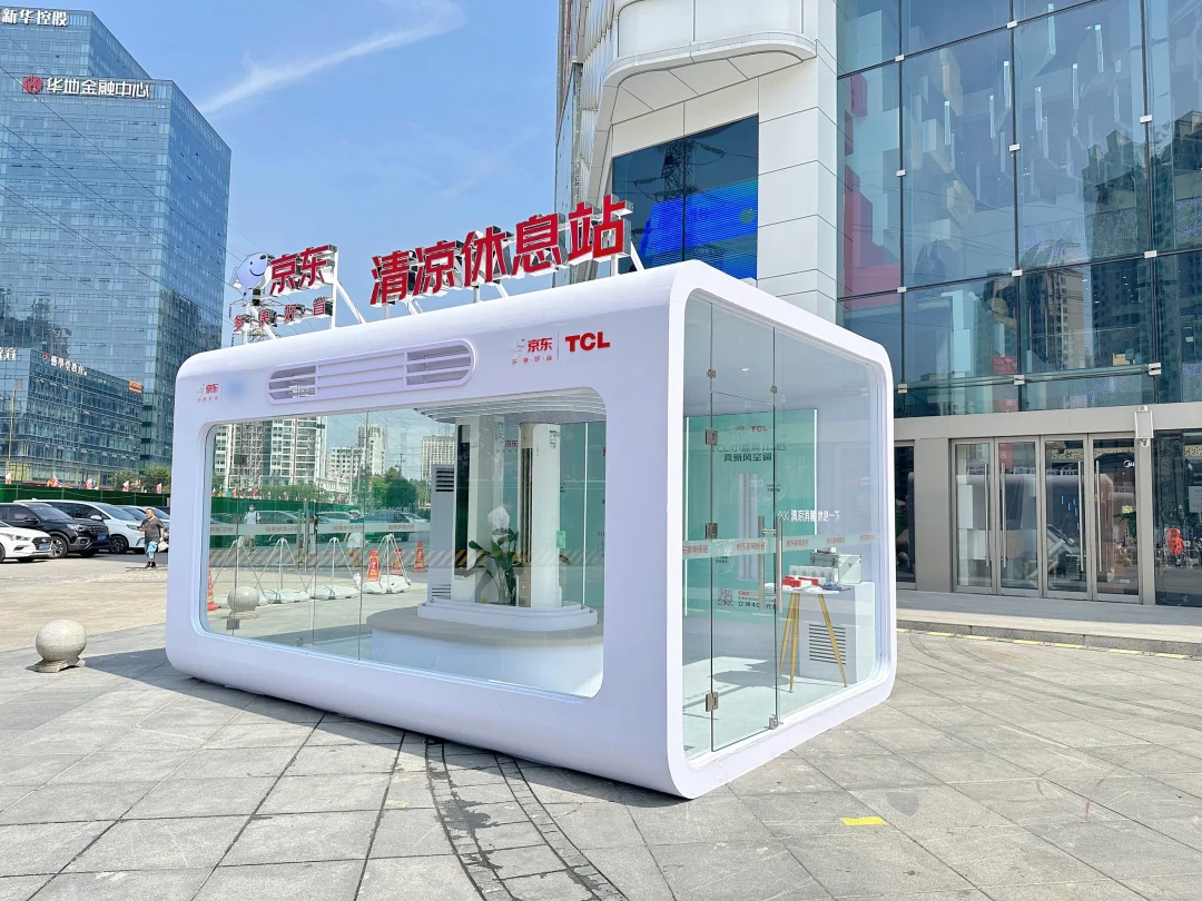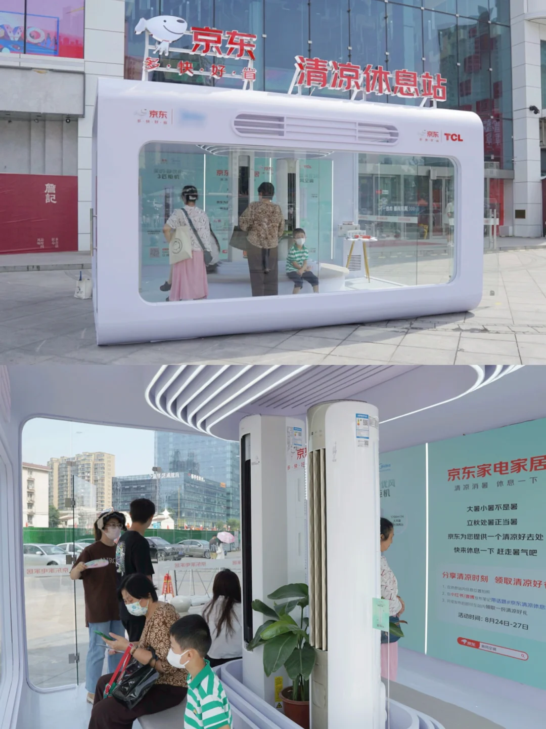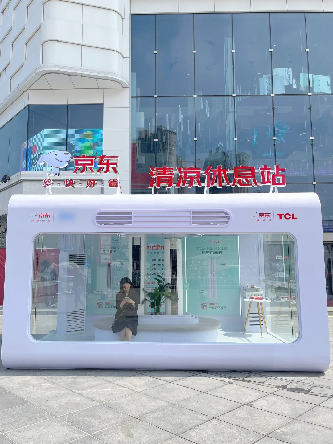 ✨问了下工作人员,说这个清凉休息站是京东联合TCL空调共同打造的,就是为了给大家提供休息纳凉的空间,还贴心的配了防暑小礼品。