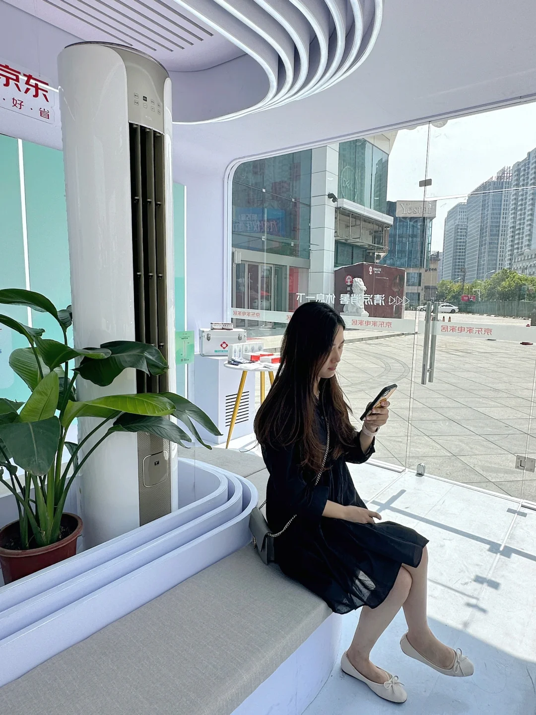 ✨休息站里用的是TCL的小蓝翼新风空调,虽然只是玻璃房,但温度也控制的刚刚好!加上新风功能,小小的空间里始终都有清新的空气,坐满了人也一点不觉得闷!