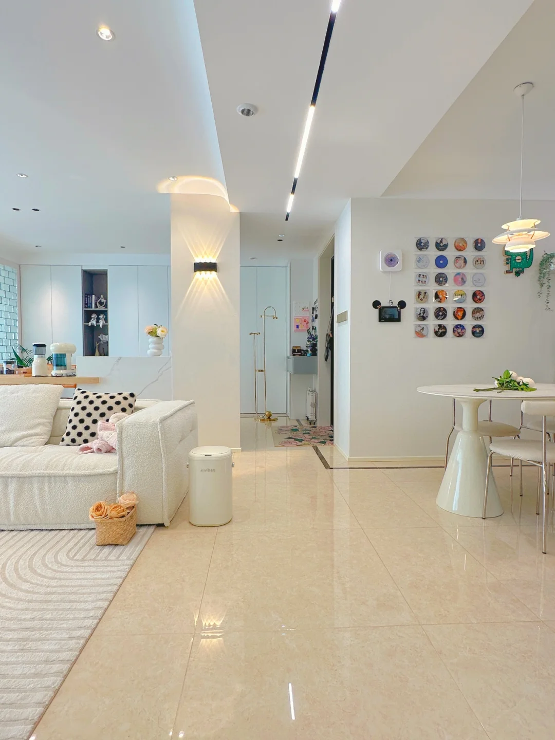 砸掉了开发商交付时的复杂吊顶做了平顶 简约耐看
