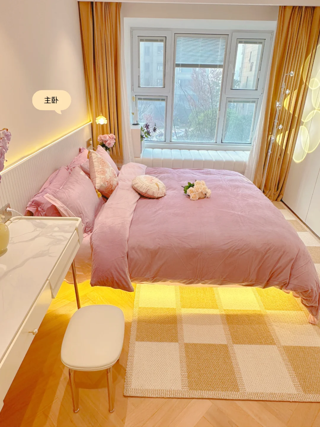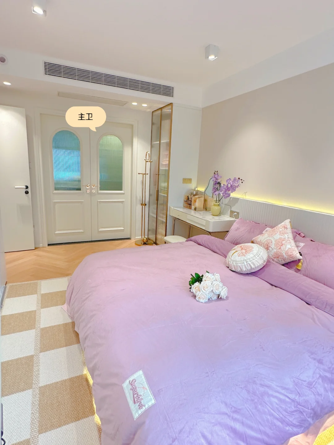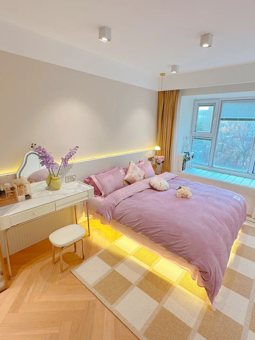 床品也是一样,选择温馨点的,冬天来了,换上牛奶绒四件套,紫色特别温柔,一铺上就是个奶油系卧室,毛茸茸的手感,看着就想躺进去。