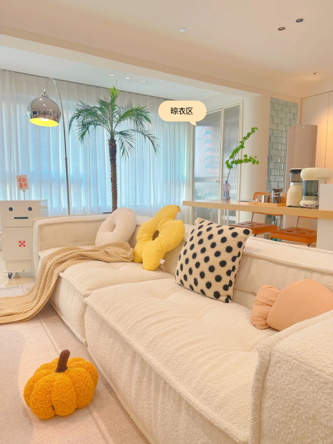 家具不要太花哨,选择造型简约、好看、有质感的,颜色选择同色系的,我家基本都是浅米色、白色这种,温馨又好看。