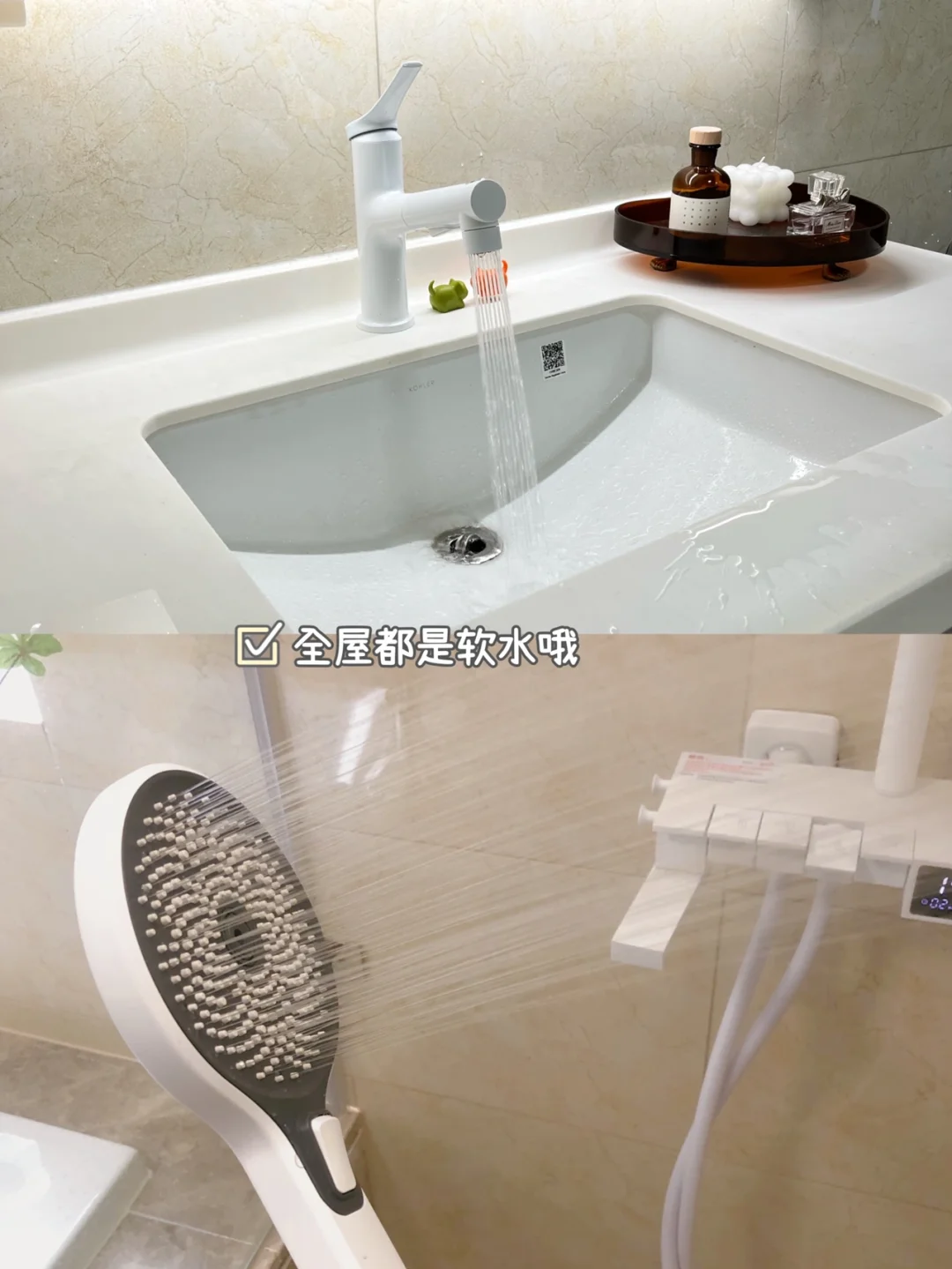 🍃我们家中央软水是全屋都有的,厨房也接了软水。这样不管是卫生间的马桶、花洒还是厨房的餐具,都不会有水垢烦恼啦~