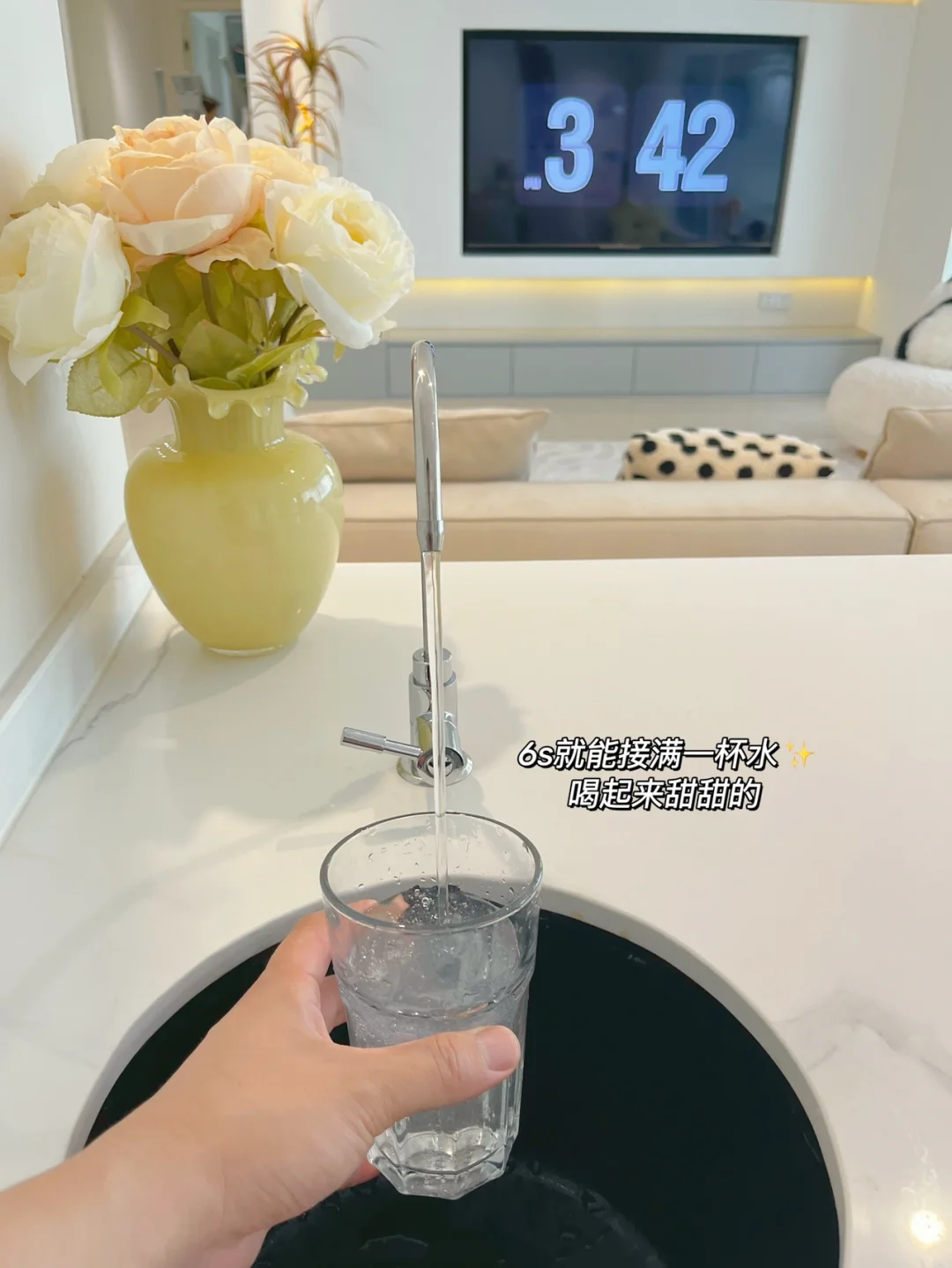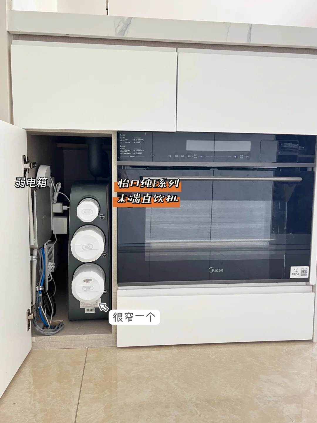 🌟当然如果想直接喝还需要增加一台末端直饮机。因为平时朋友聚会、自己办公都在岛台区,所以我把直饮机是装在了岛台下面,做咖啡、做饮品,洗水果都太方便了。