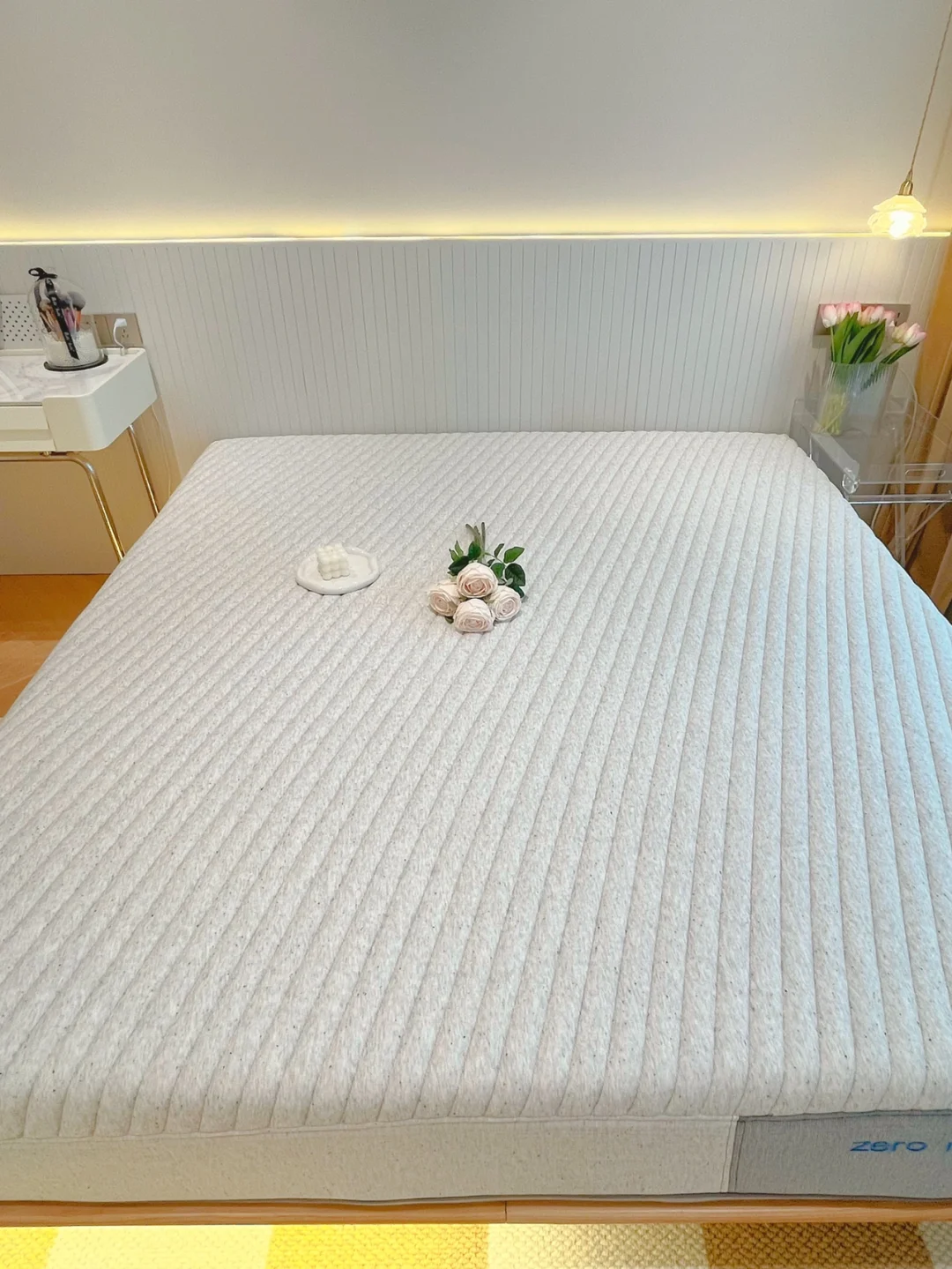 卧室床头布莱垦棕,搭配粉粉的静谧花开四件套,花朵刺绣又精致又温柔。