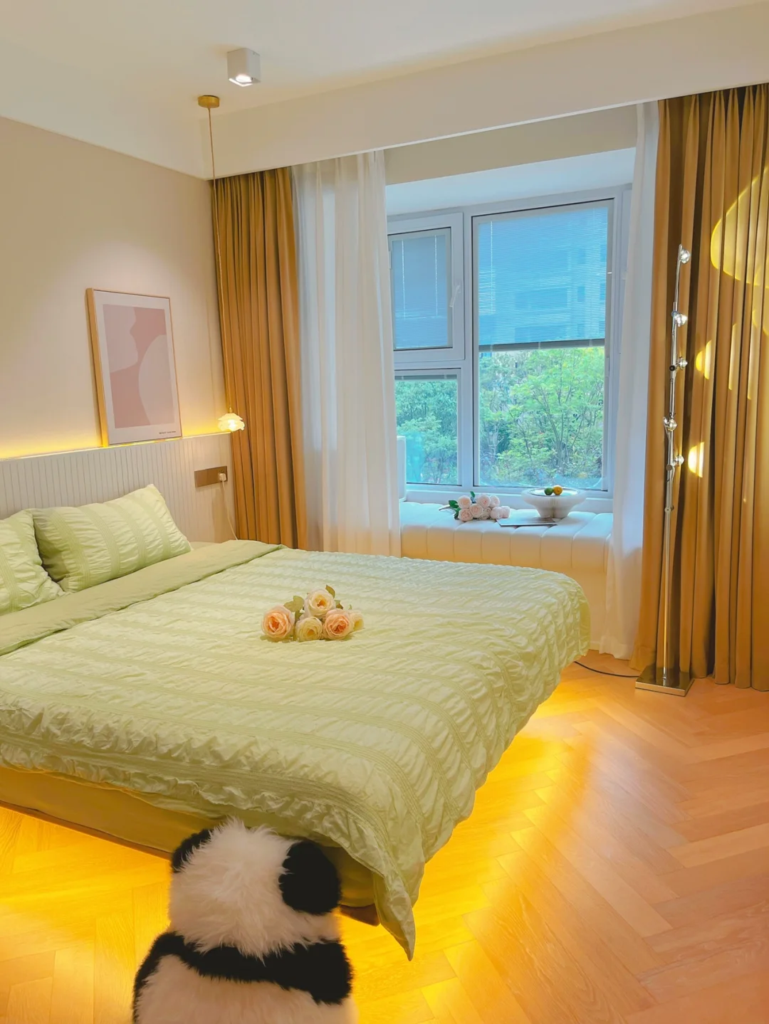 ▫️夏天来了 青草色的床品让卧室更加清爽