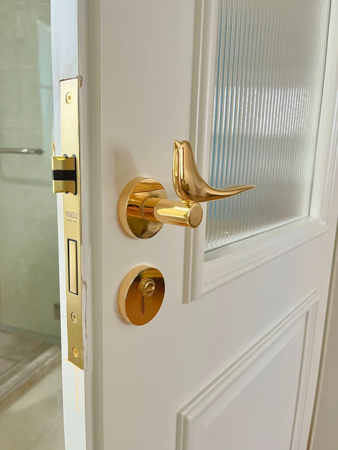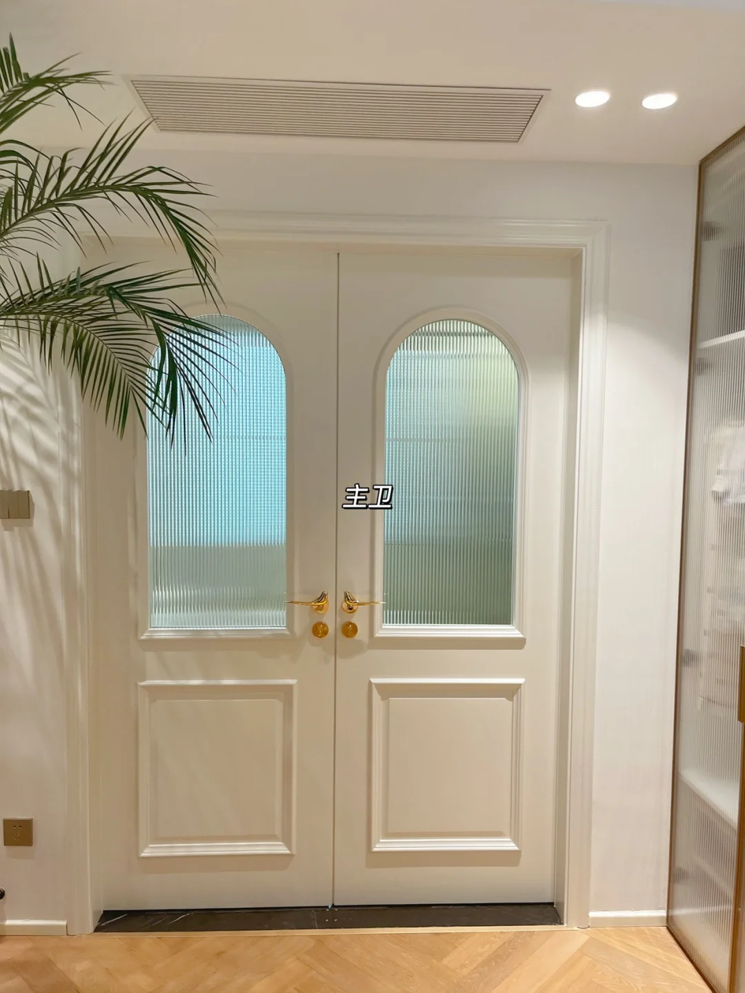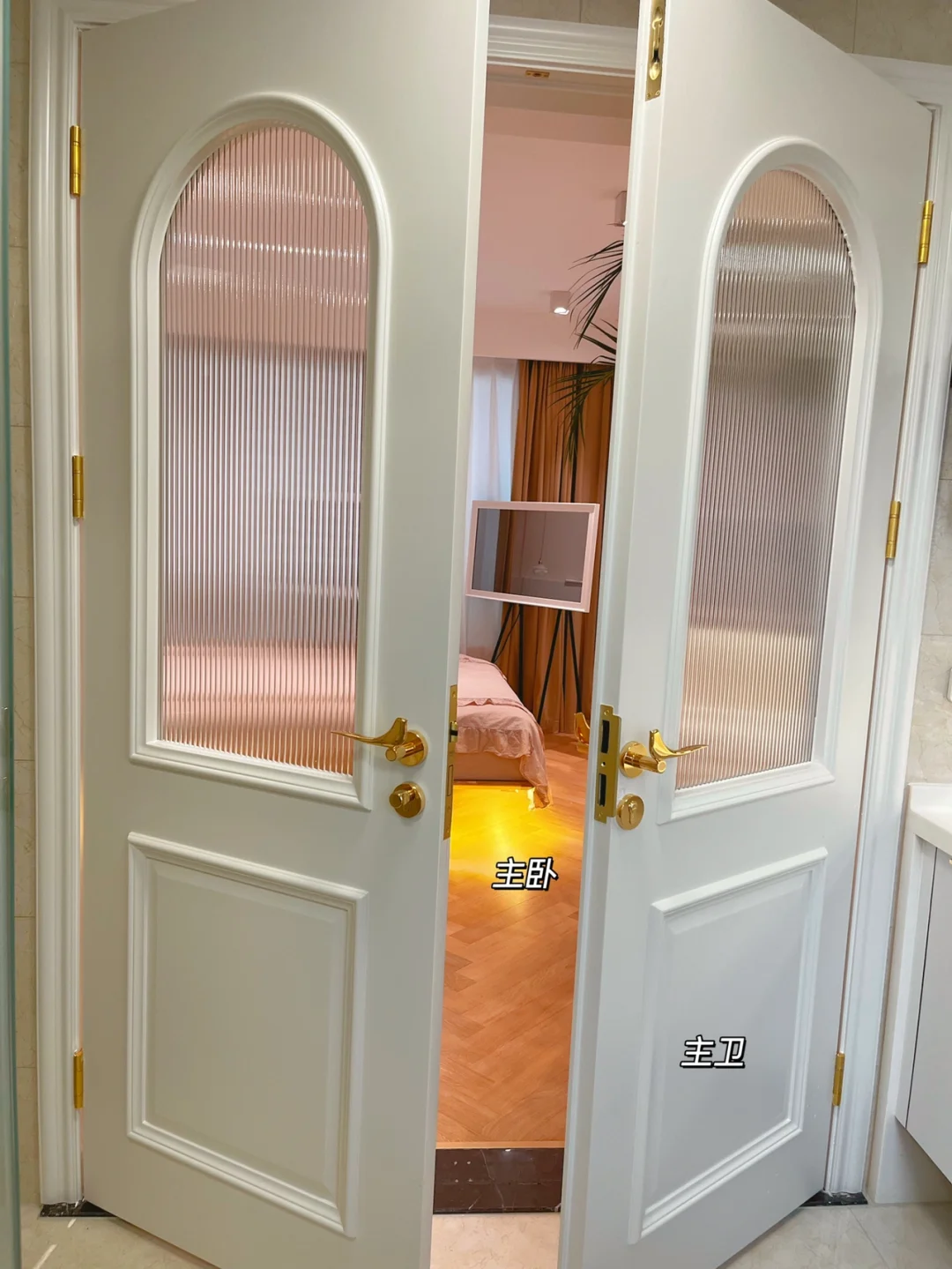 感谢亚固门锁邀约试用! 我终于把我家的两个浴室门和门锁换了! 木门配长虹玻璃简直美哭了😭 这次门选择了网购,一千多的价格太香了‼️ ◼️主卫门 将原来的推拉门换成了双开门,超白长虹玻璃没有磨砂 宽度:1.5m 高度:2.2m 装门师傅一边装一边夸太美了 ◼️次卫门 宽度:80cm 高度:2.2m 依然是木门配单层超白长虹玻璃,因为是次卫,所以加了磨砂更隐私 金色的🐦锁质感真的棒! 长虹玻璃门配金锁真的太绝了‼️
