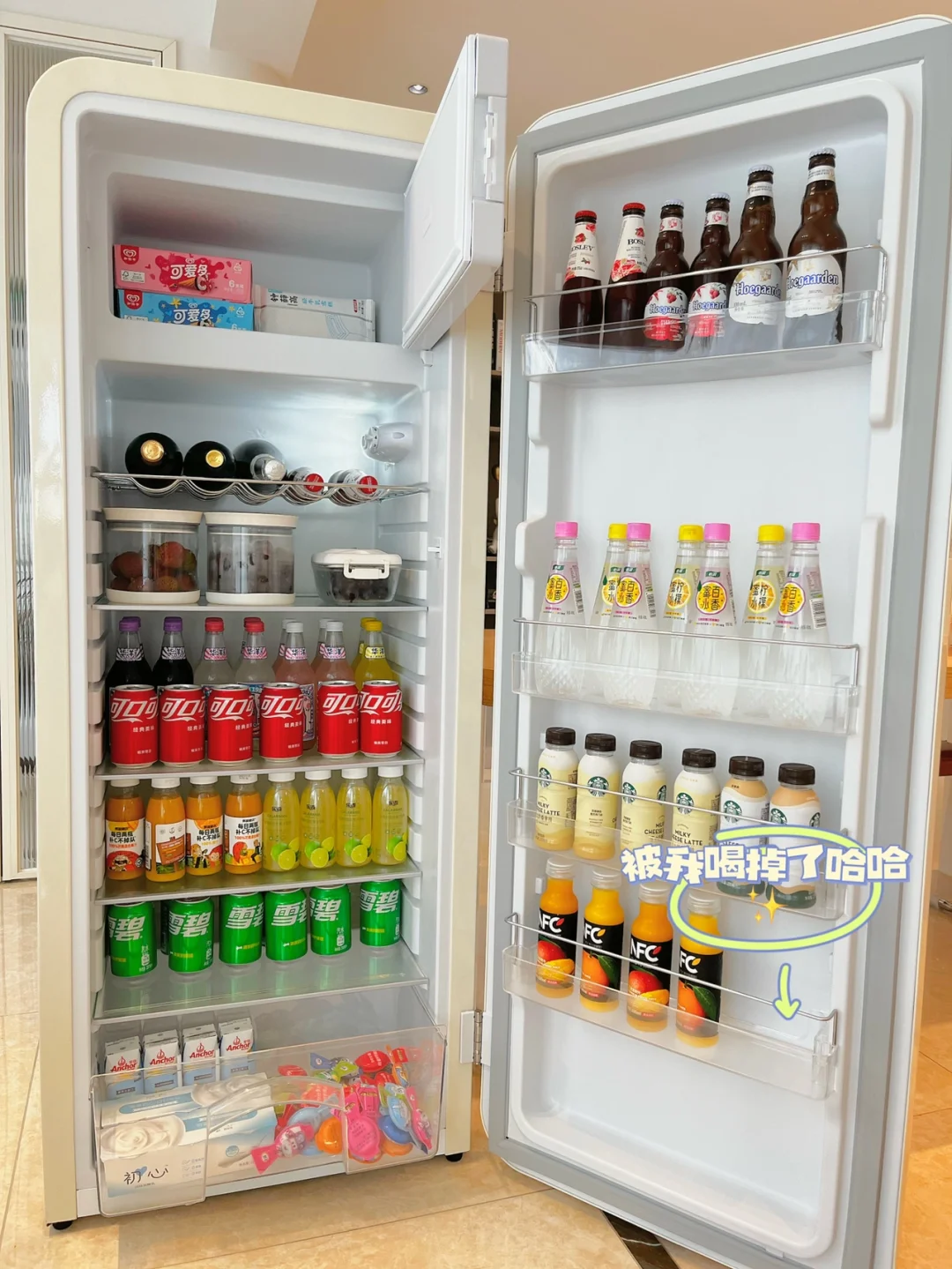 里面装满我爱的饮料和雪糕