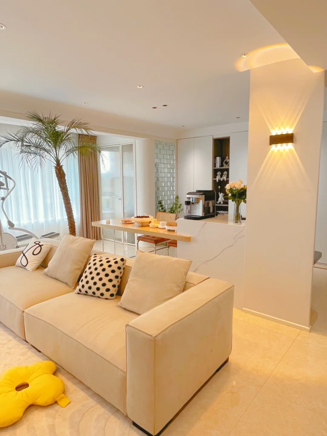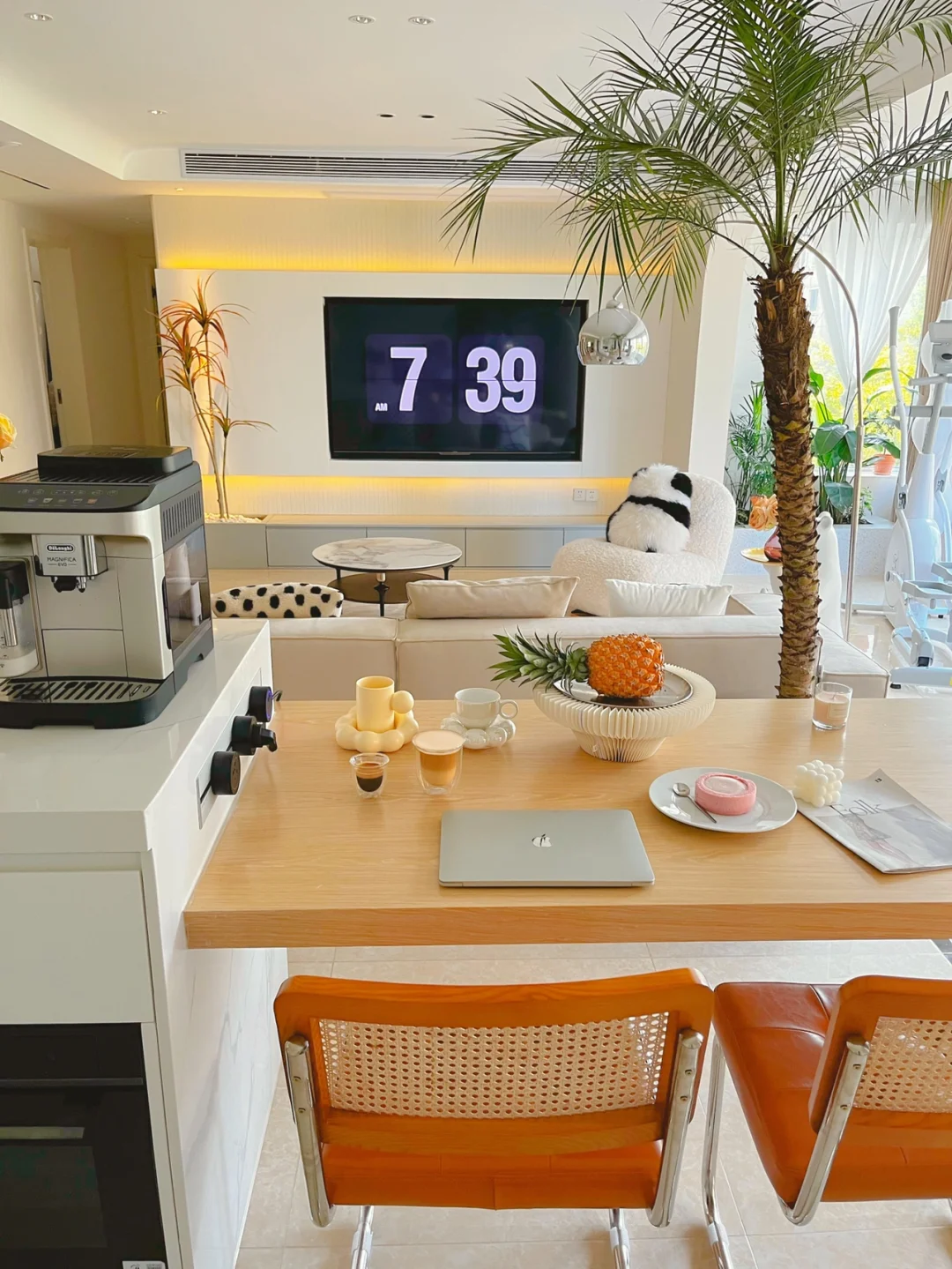 🌟装修之初就想着在家里布置一个咖啡角,作为平时在家办公休闲的地方,所以砸掉了一个房间,把沙发后面的空间改成了一个大岛台,布置成一个mini的居家咖啡馆。