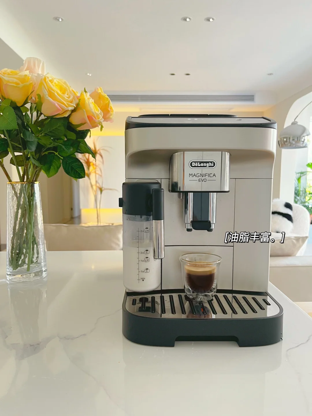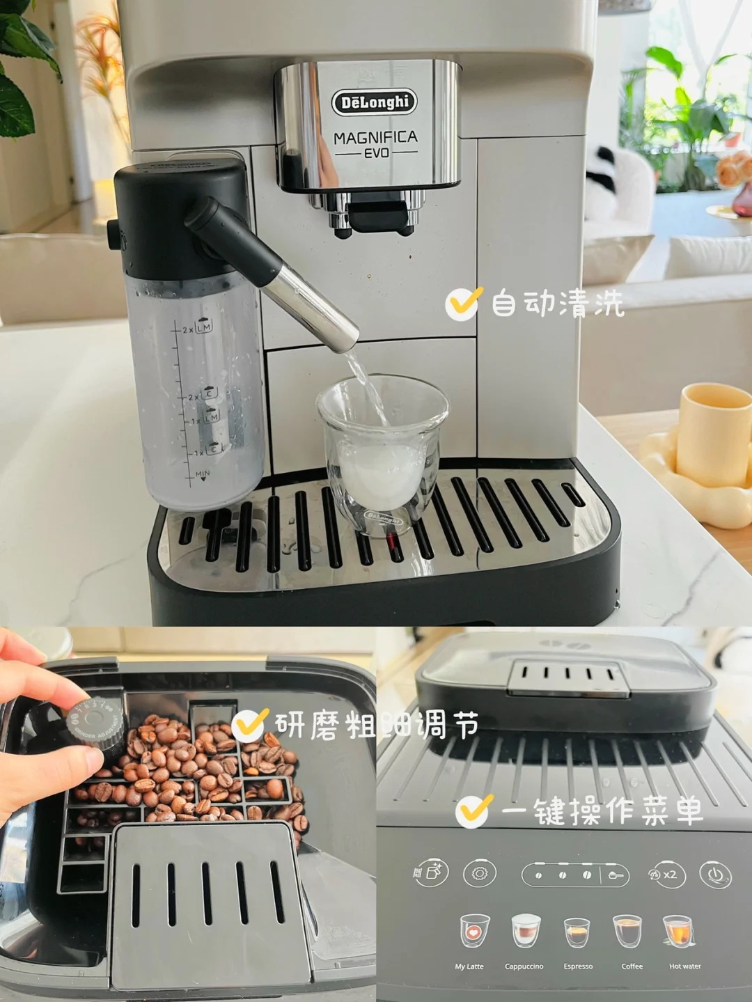 🌟我家的咖啡机是德龙E LattePlus全自动咖啡机,操作很简单,彩色触屏显示,自带清晰的7款咖啡菜单,一键就能从咖啡豆变成香浓咖啡。