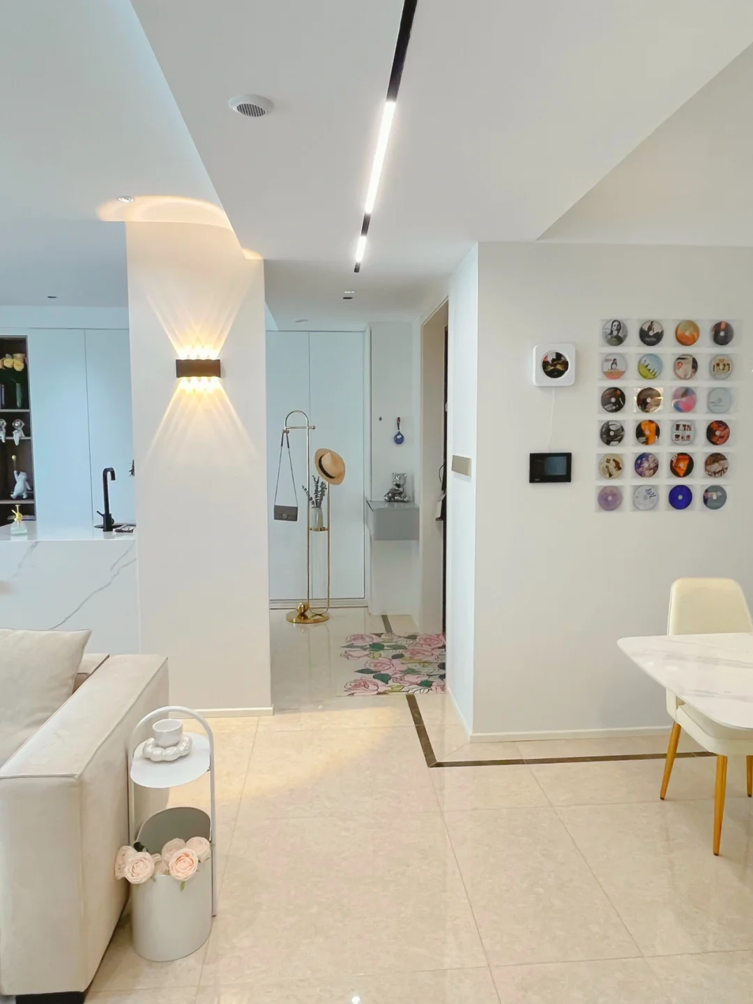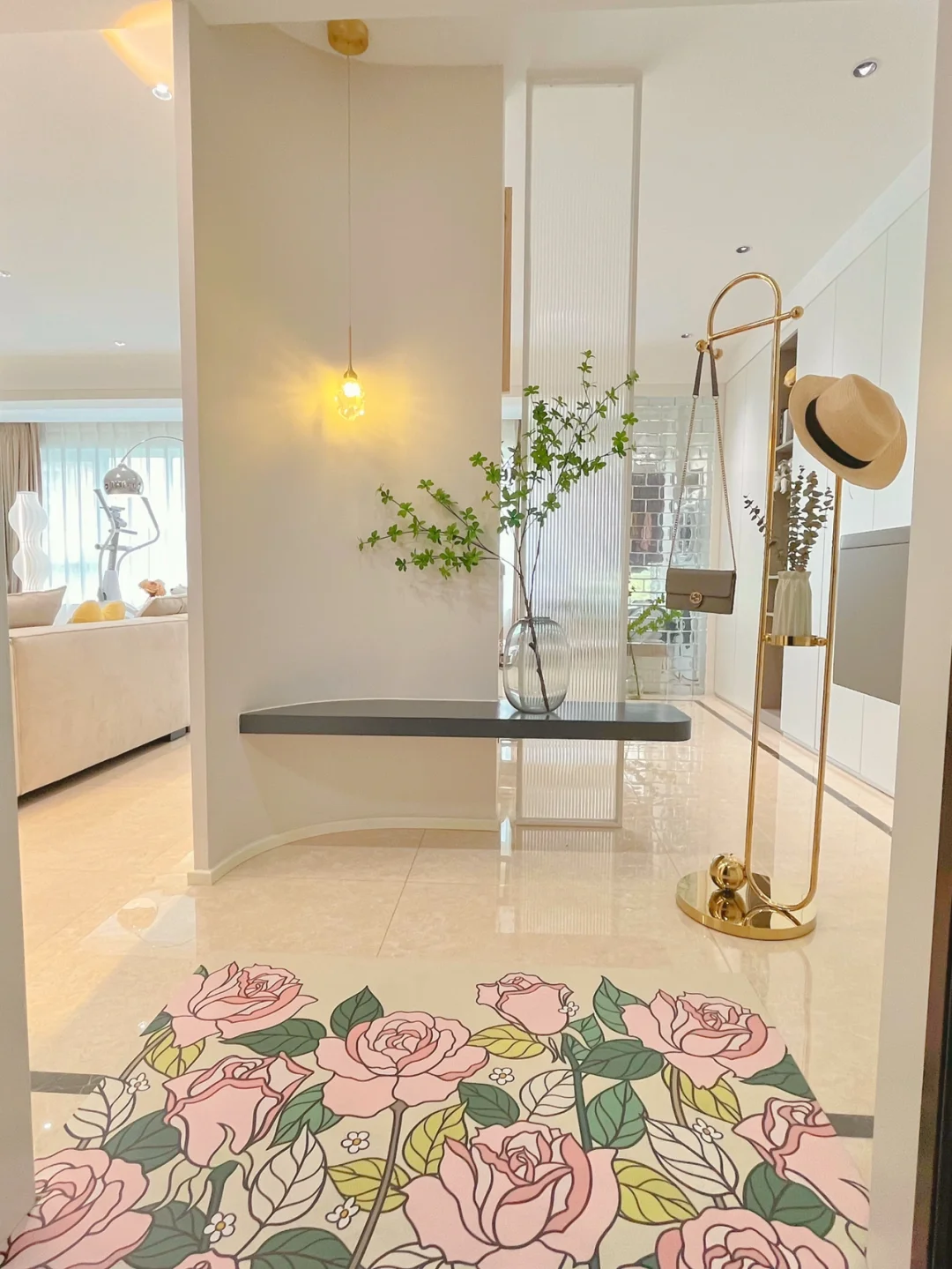 做了悬浮换鞋凳,搭配长虹玻璃,玄关既美也实用