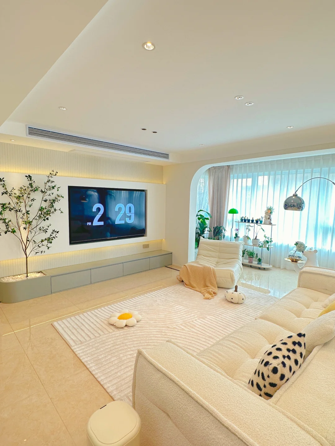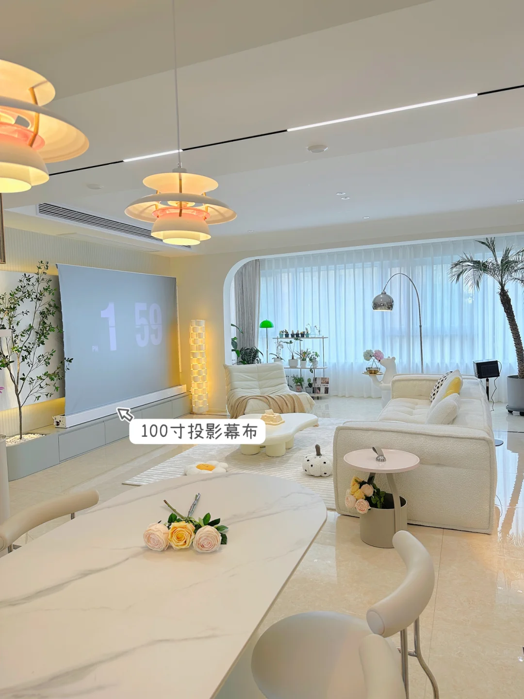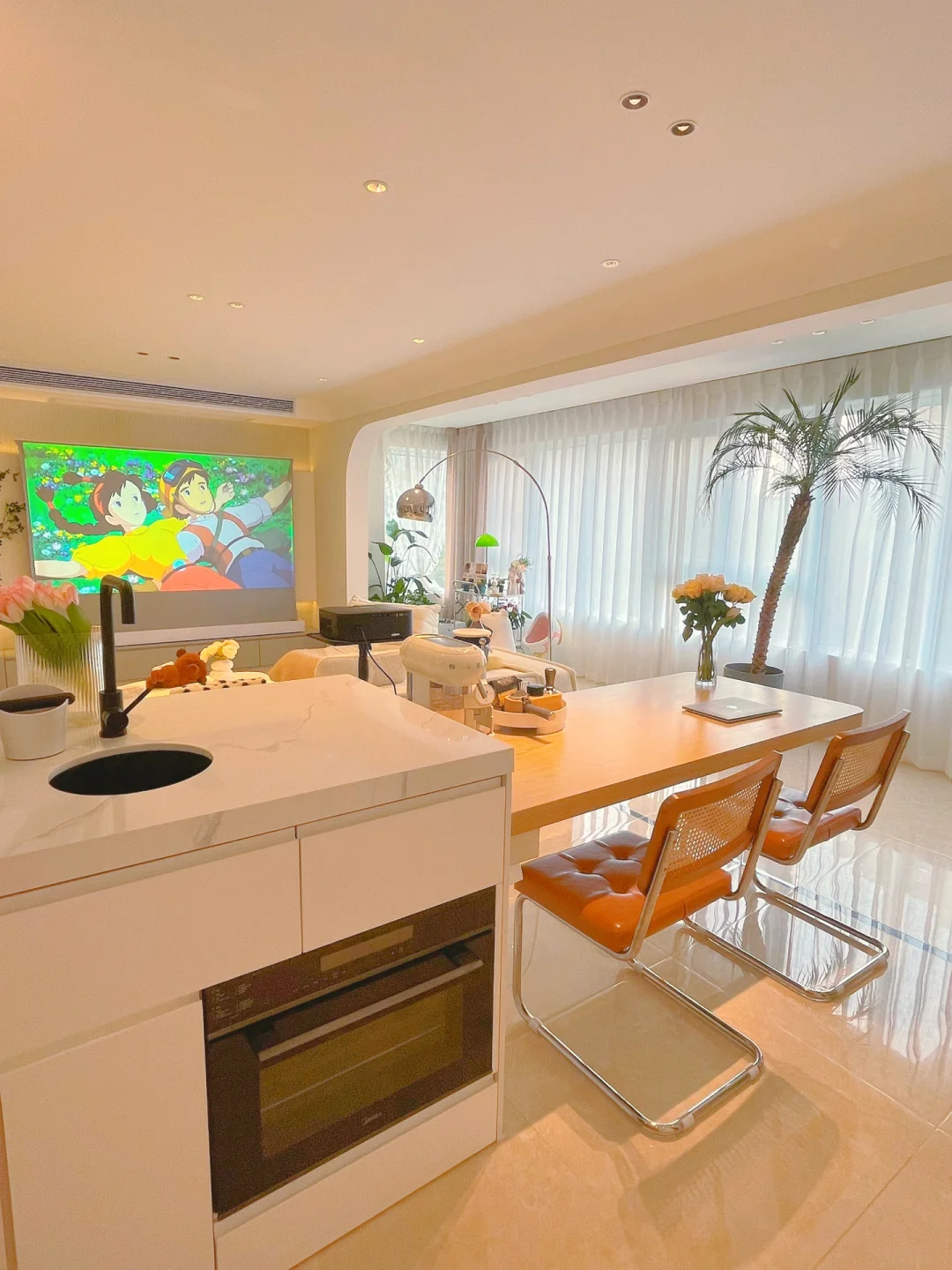 装修一切从简 没有复杂吊顶 不做复杂电视背景墙 全屋杏子灰乳胶漆通刷 这样的家也很好‼️ 重要的是硬装才4W‼️ 餐厅选择了一套造型独特的餐桌和餐椅 奶油色的很喜欢 1.6m长很适合我们一家三口 也让普普通通的餐厅变得没那么普通啦~
