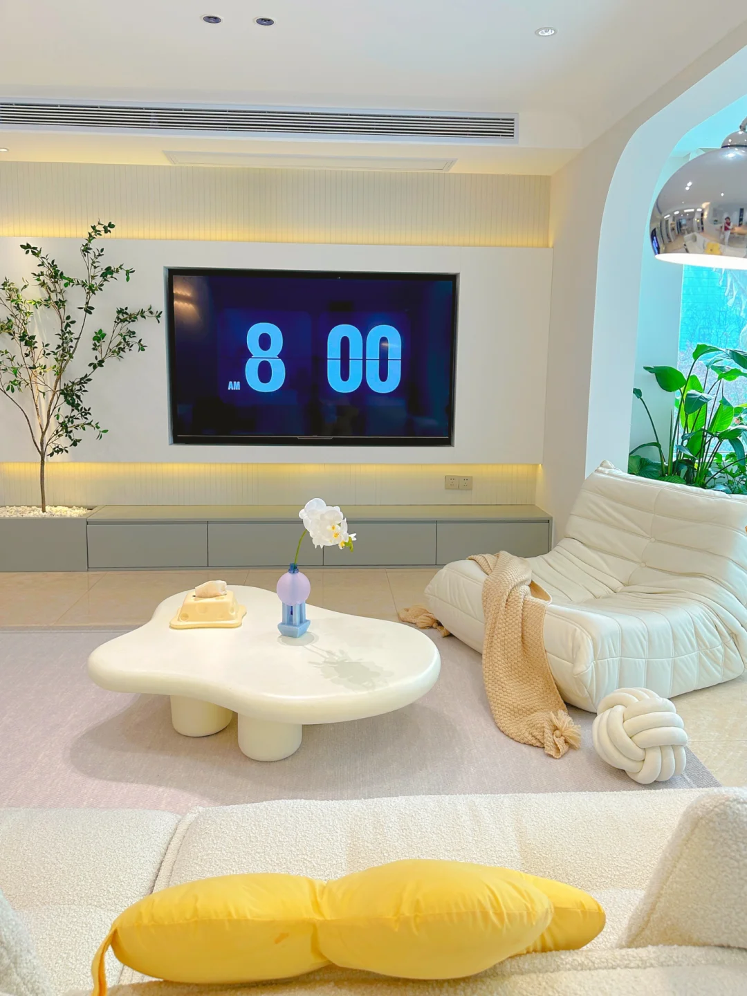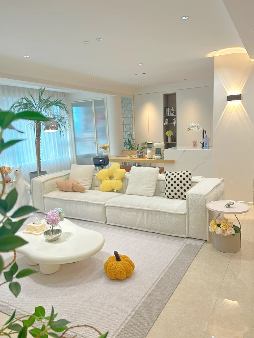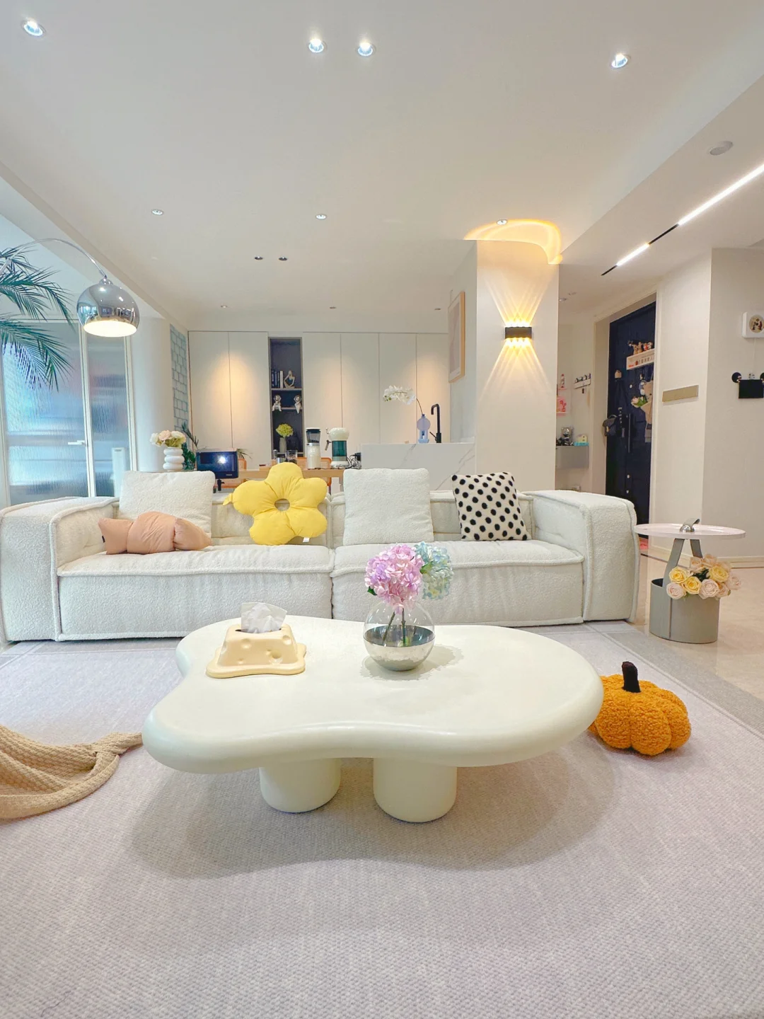 奶油色的沙发和茶几可可爱爱 云朵造型也很独特