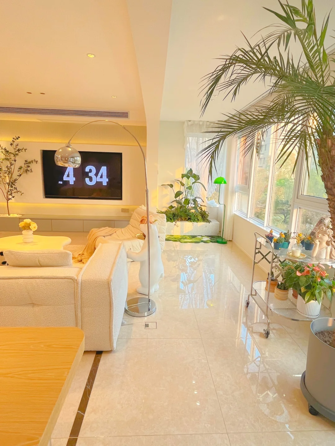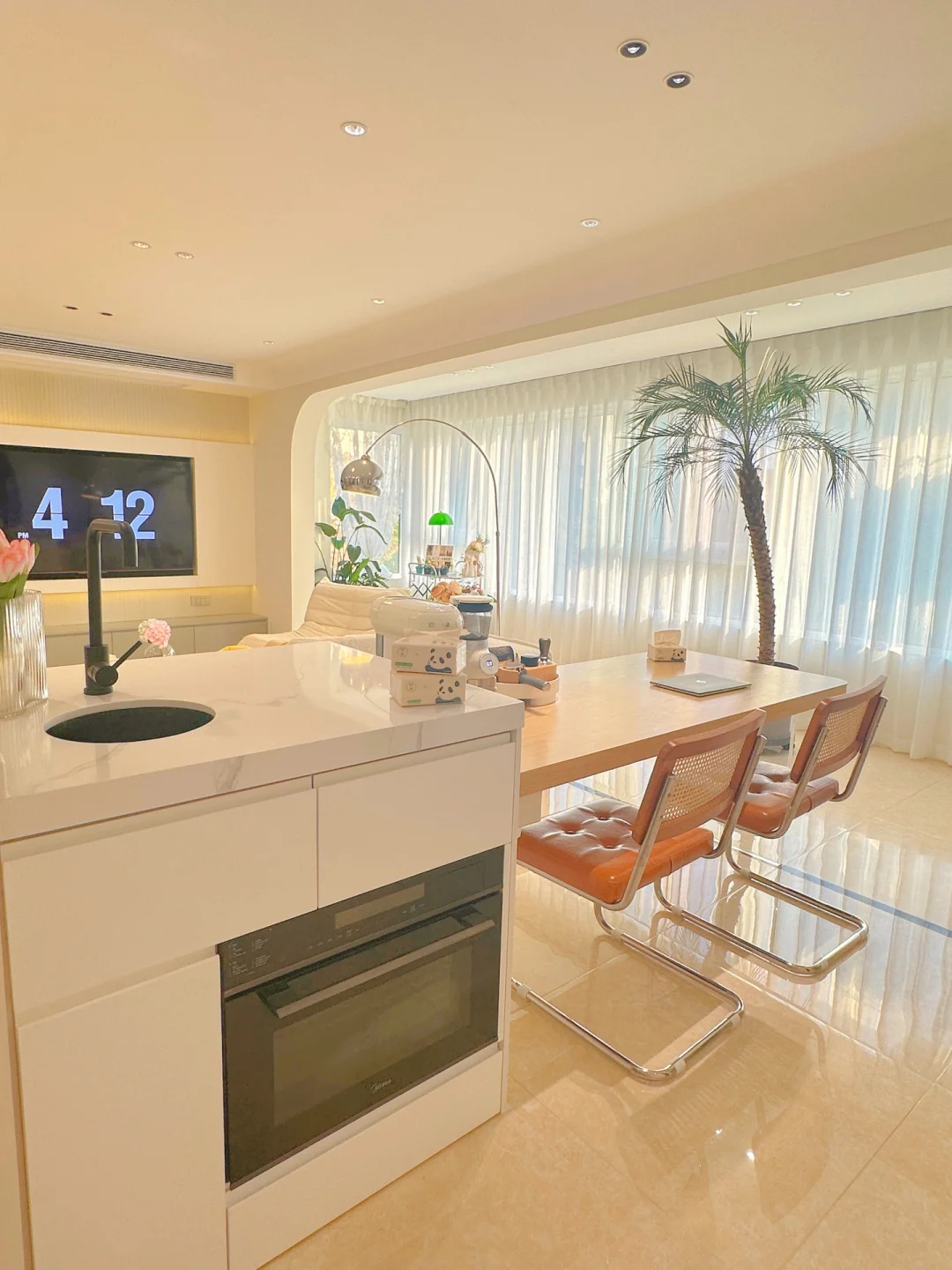 家里种上花草,空闲时间可以在岛台上做做甜点