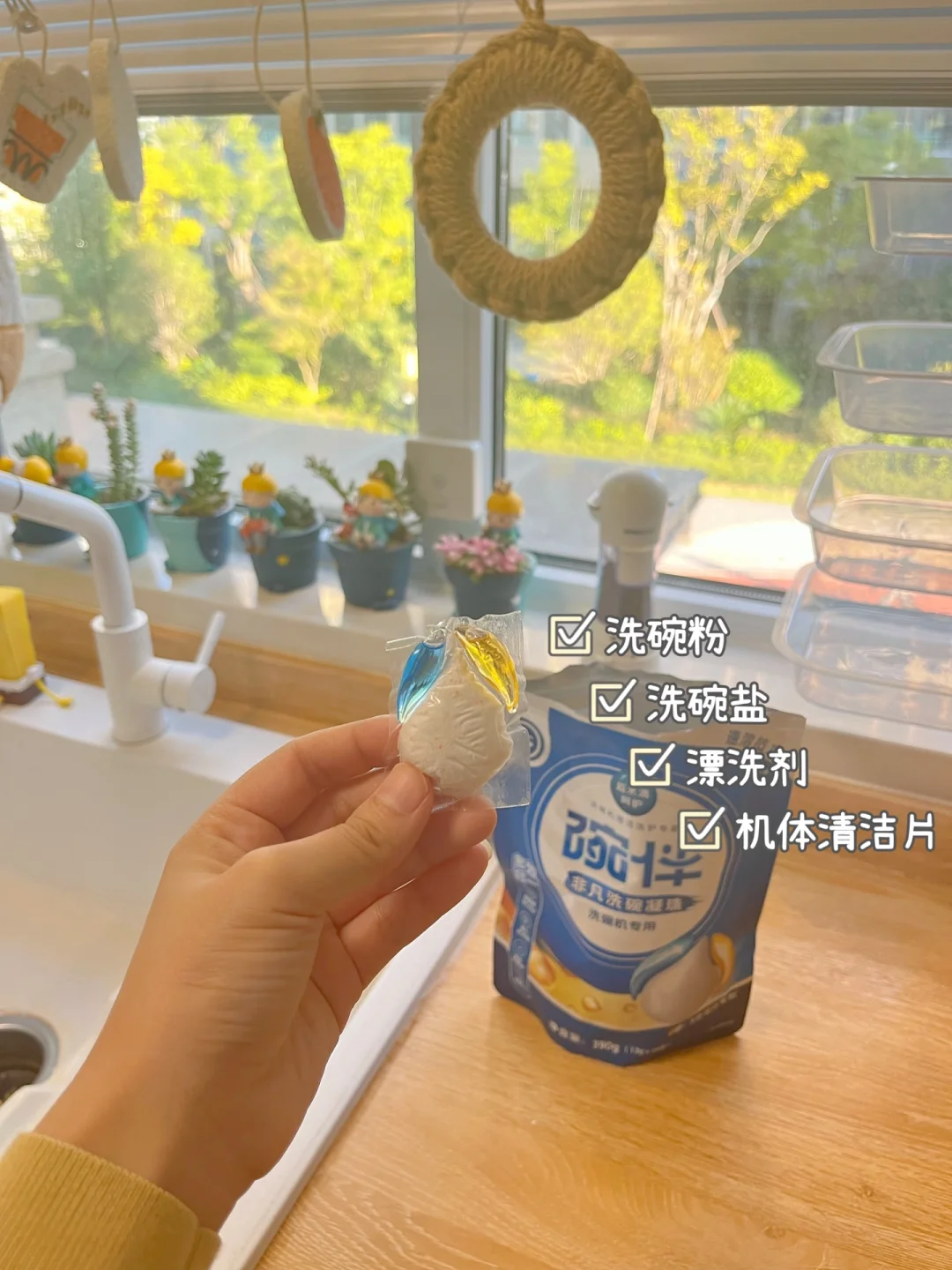 ✨最近入手了碗伴洗碗凝珠,一颗就包含了洗碗粉、洗碗盐、光亮剂、机体清洁剂