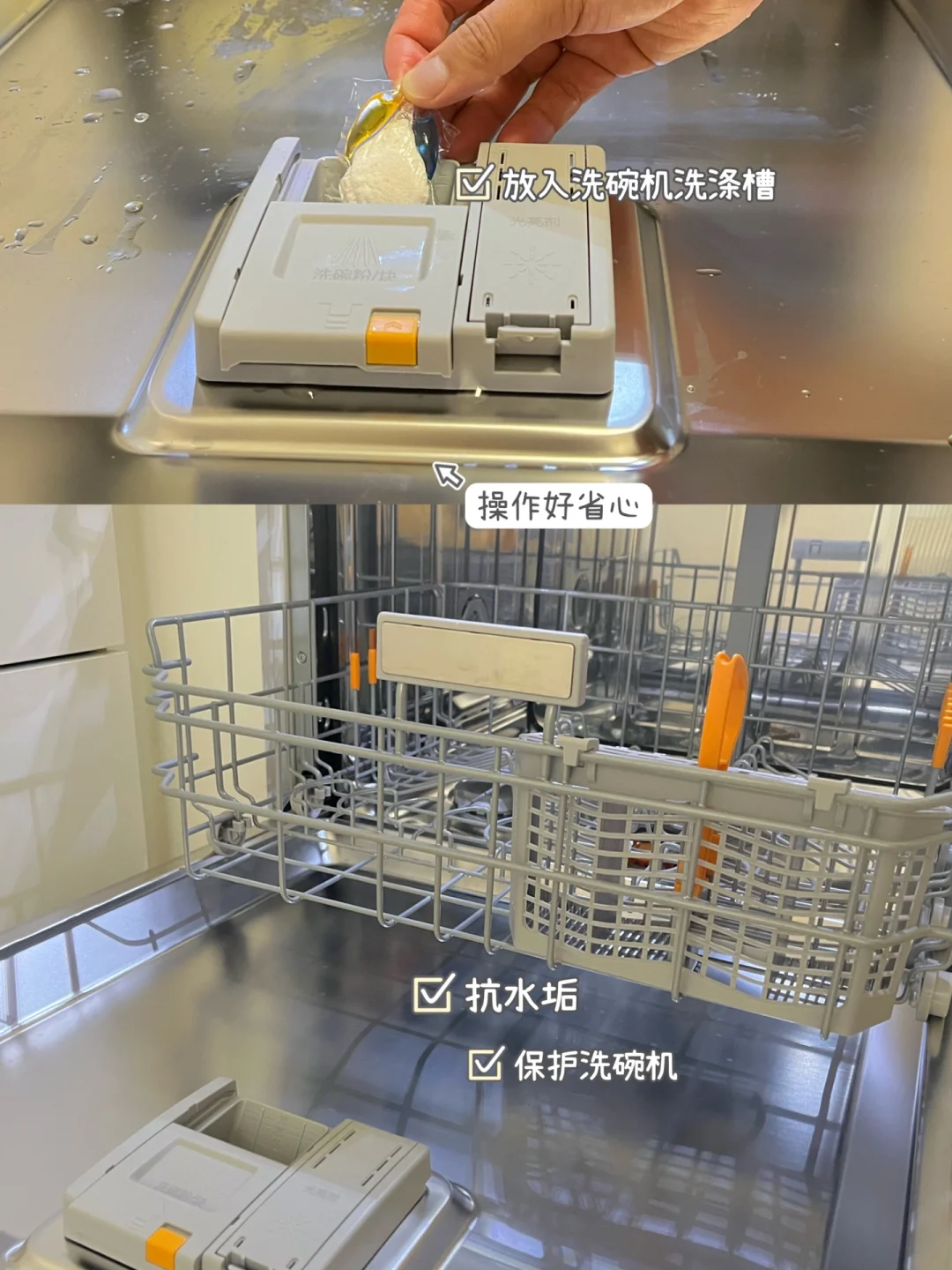 现在每次洗碗放一颗就全部搞定了,洗碗的同时,连洗碗机的机体也一起清洁了。