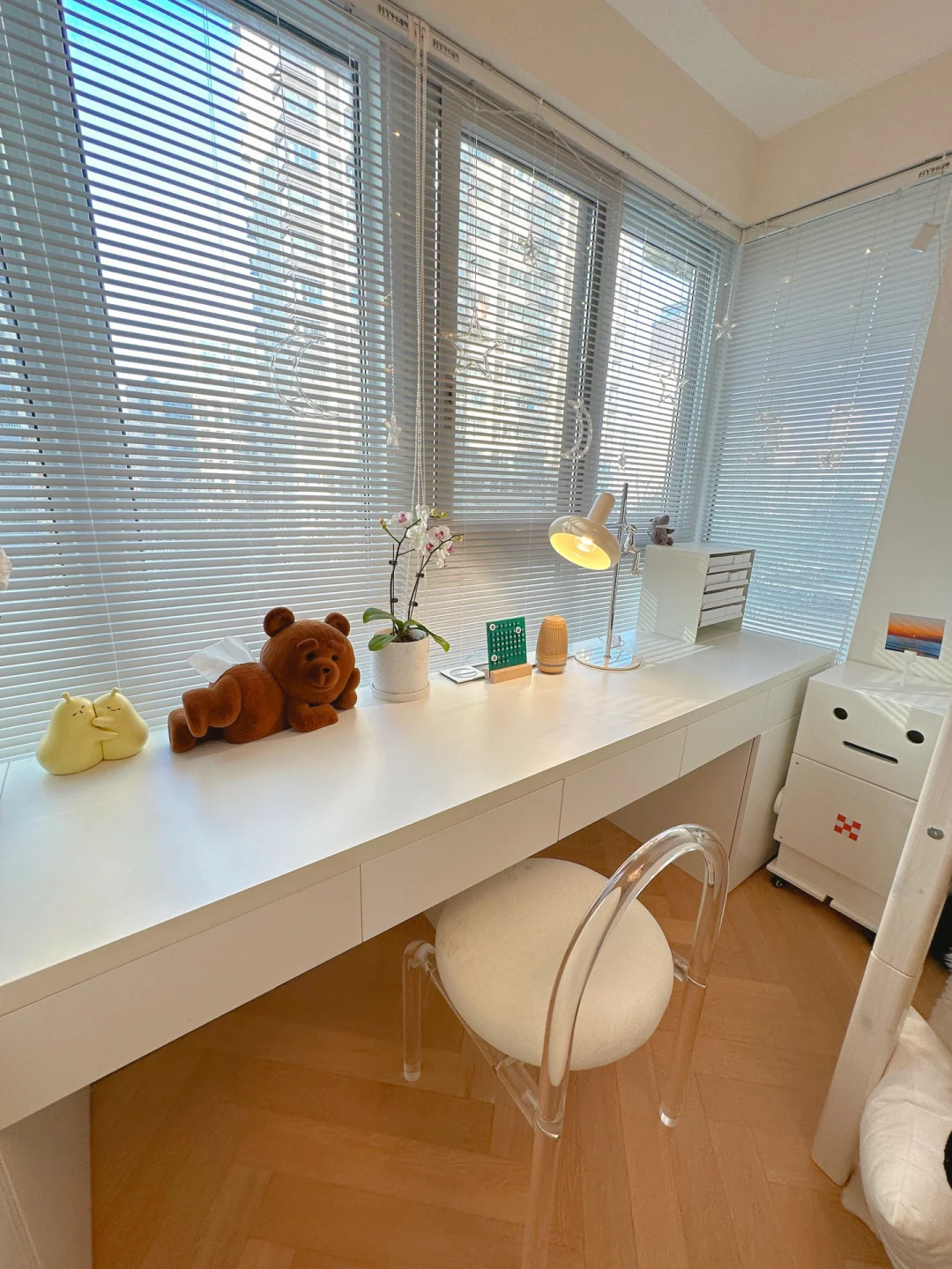 ⭐️3.2x2.6m,8.3平,房间有一整面的窗户,光线不错,所以就做了一个2米长的大书桌,桌板是定制的爱格板,厚度36mm。