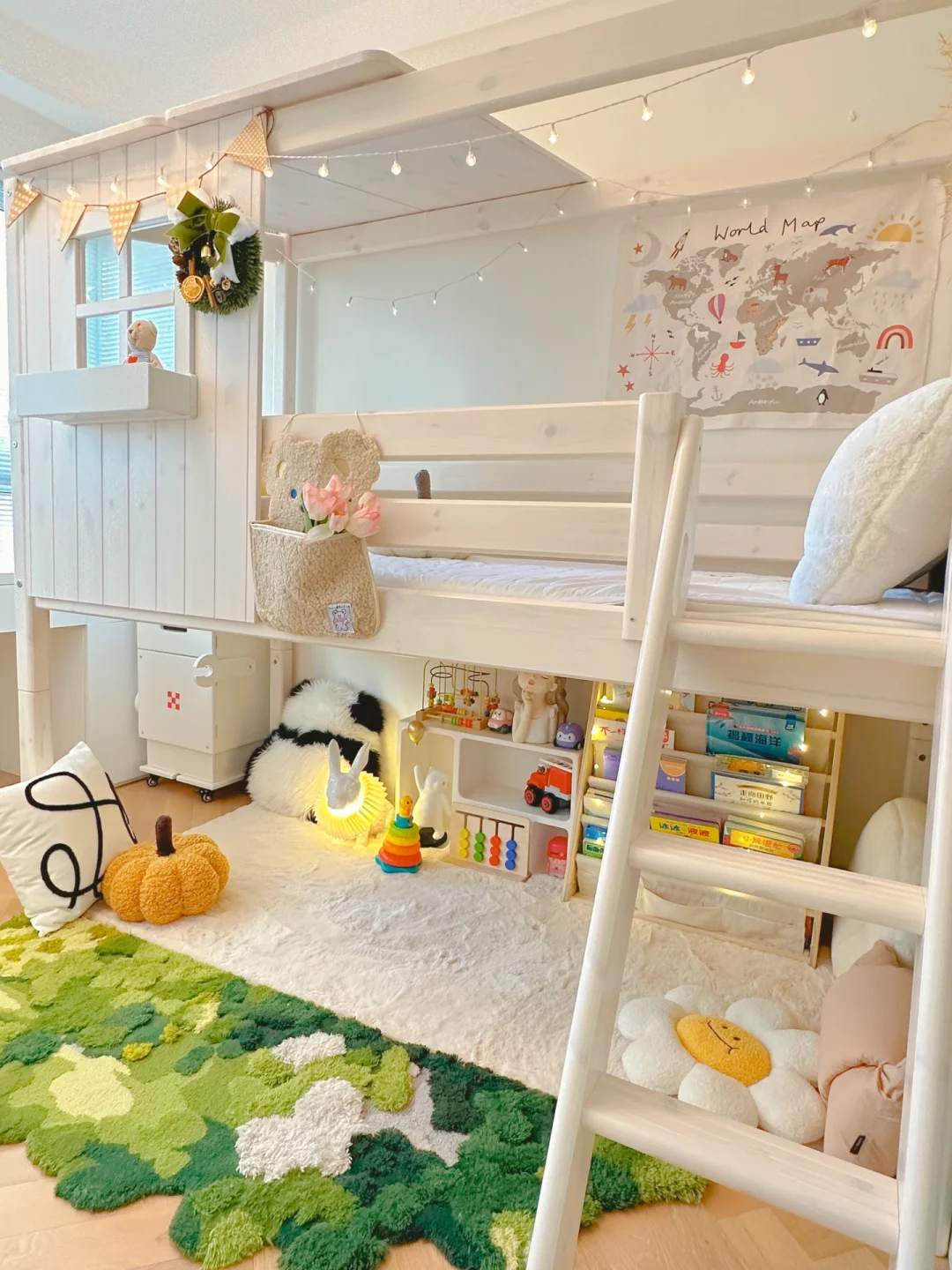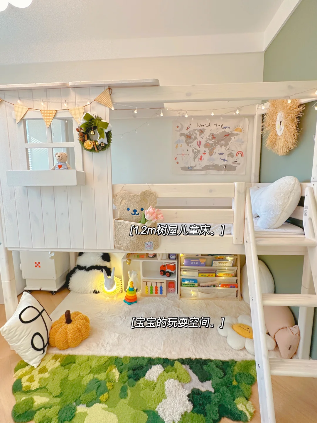 ⭐️儿童床是一款全实木的树屋床,选择儿童床我也费了很多心思,不仅要好看好玩还得环保!树屋的造型应该每个小朋友都不会拒绝吧,床下的空间可以放绘本和玩具,对面积小的房间很友好,娃特别喜欢在底下玩,总是说床下就是她的“秘密基地”!