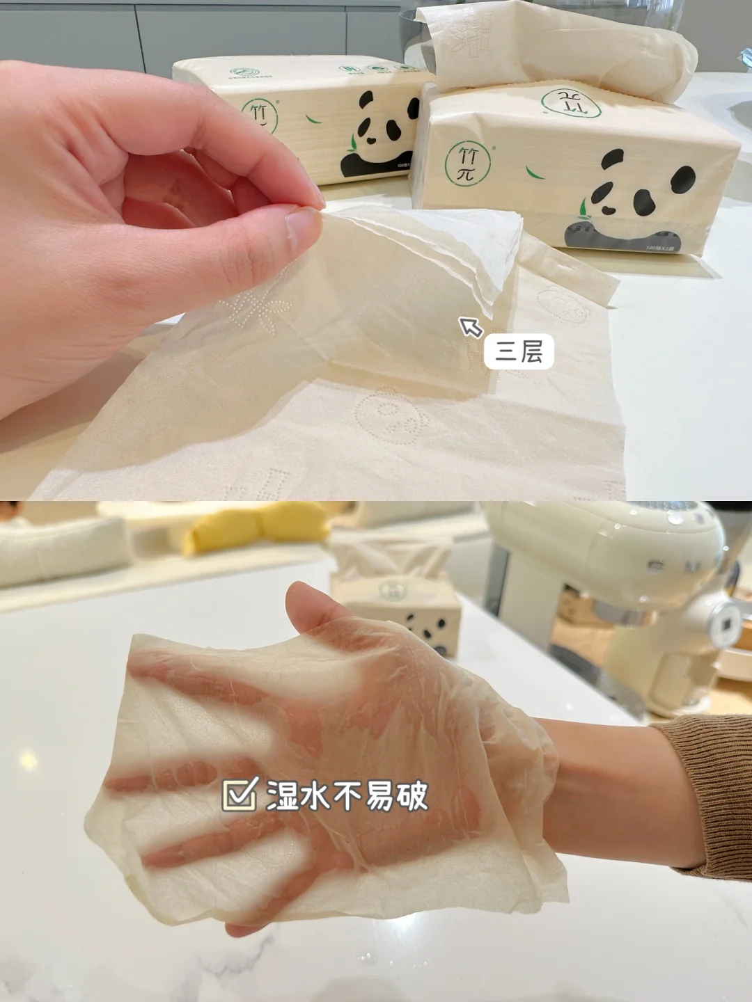 🌟真正使用下来,发现这个竹浆纸吸水性也更强,还不会掉屑。3层的厚度就很合适,湿水也不容易破