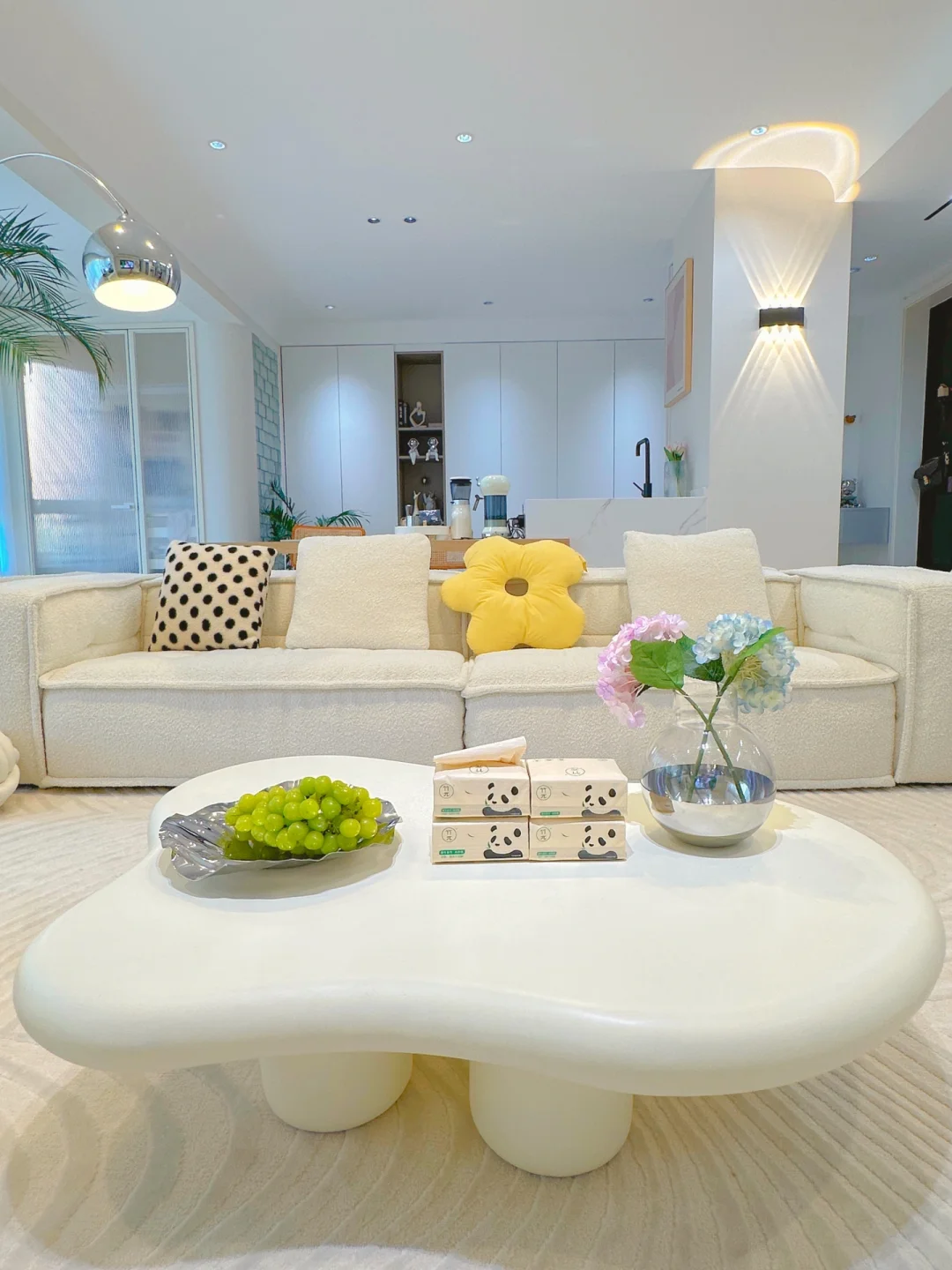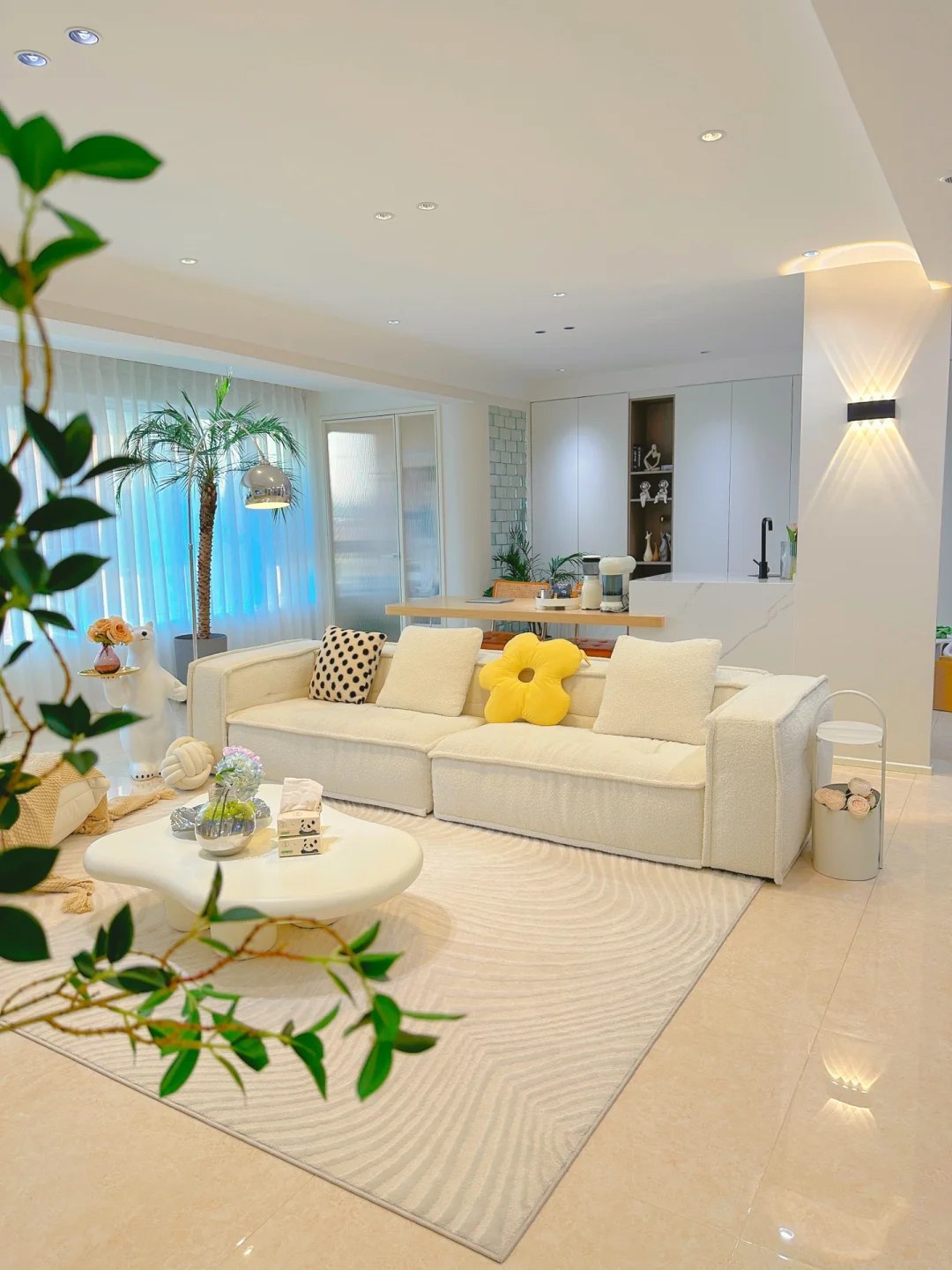 ✔️软装全部都是奶白色这类浅色,颜色统一能让家里显得不凌乱