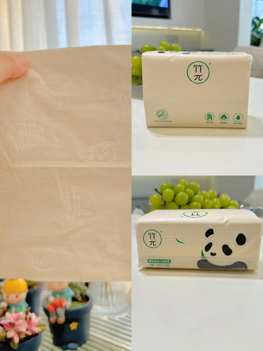 🌟一直都比较偏爱天然和原色的东西,不最近囤了不少恒安竹派的“熊猫纸”,包装简约,熊猫很可爱!纸巾上还有印花,一整个爱住!