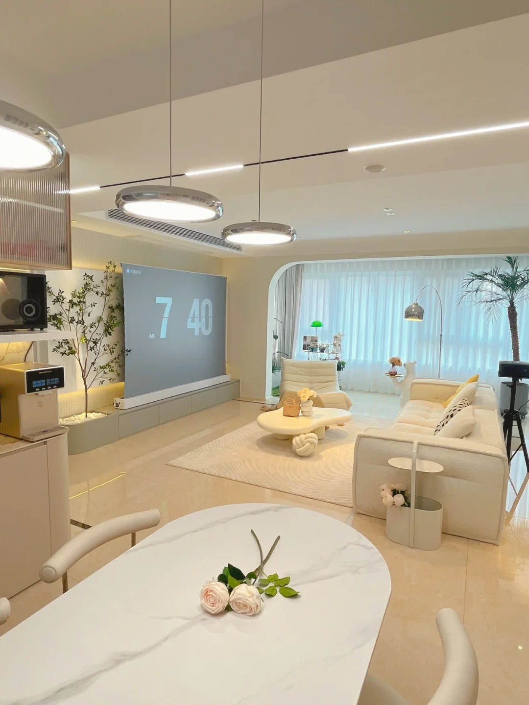 无主灯的设计让空间更有层次感,客厅色温建议选择3500K-4000K