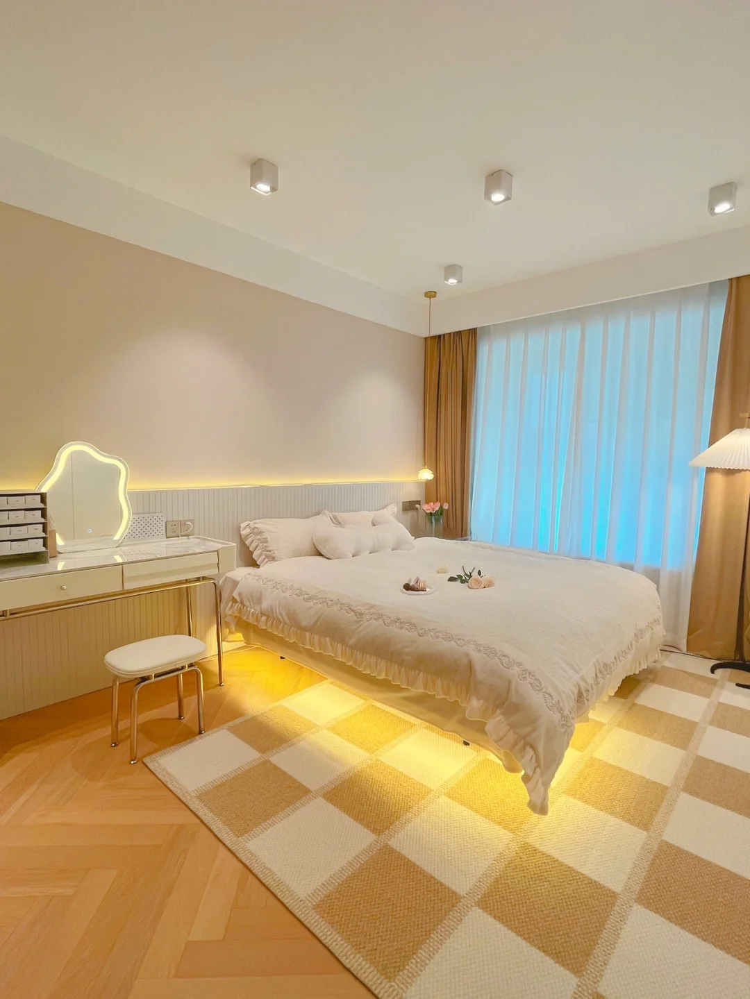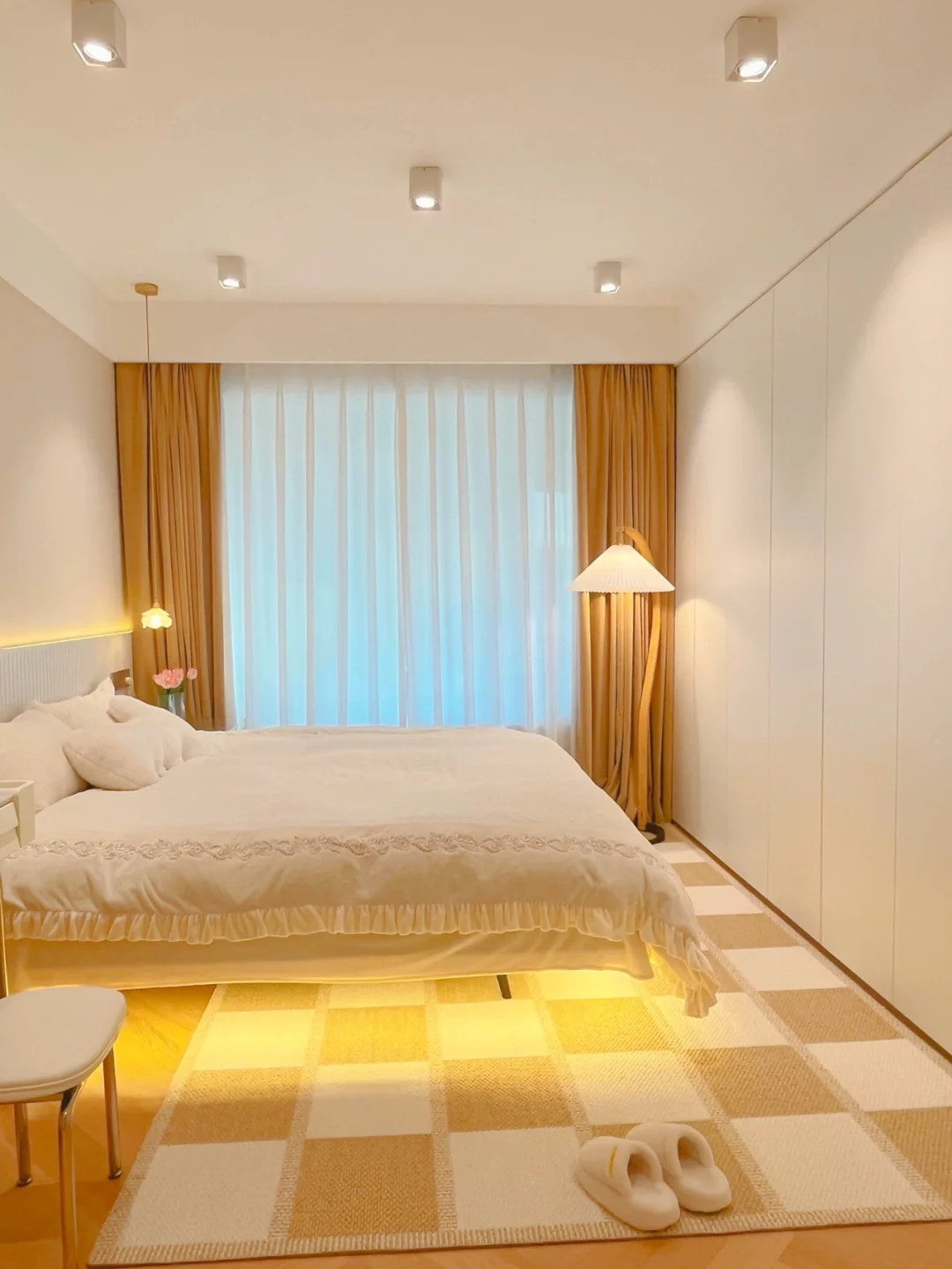 卧室靠墙做了一排衣柜,无床头的悬浮床YYDS!