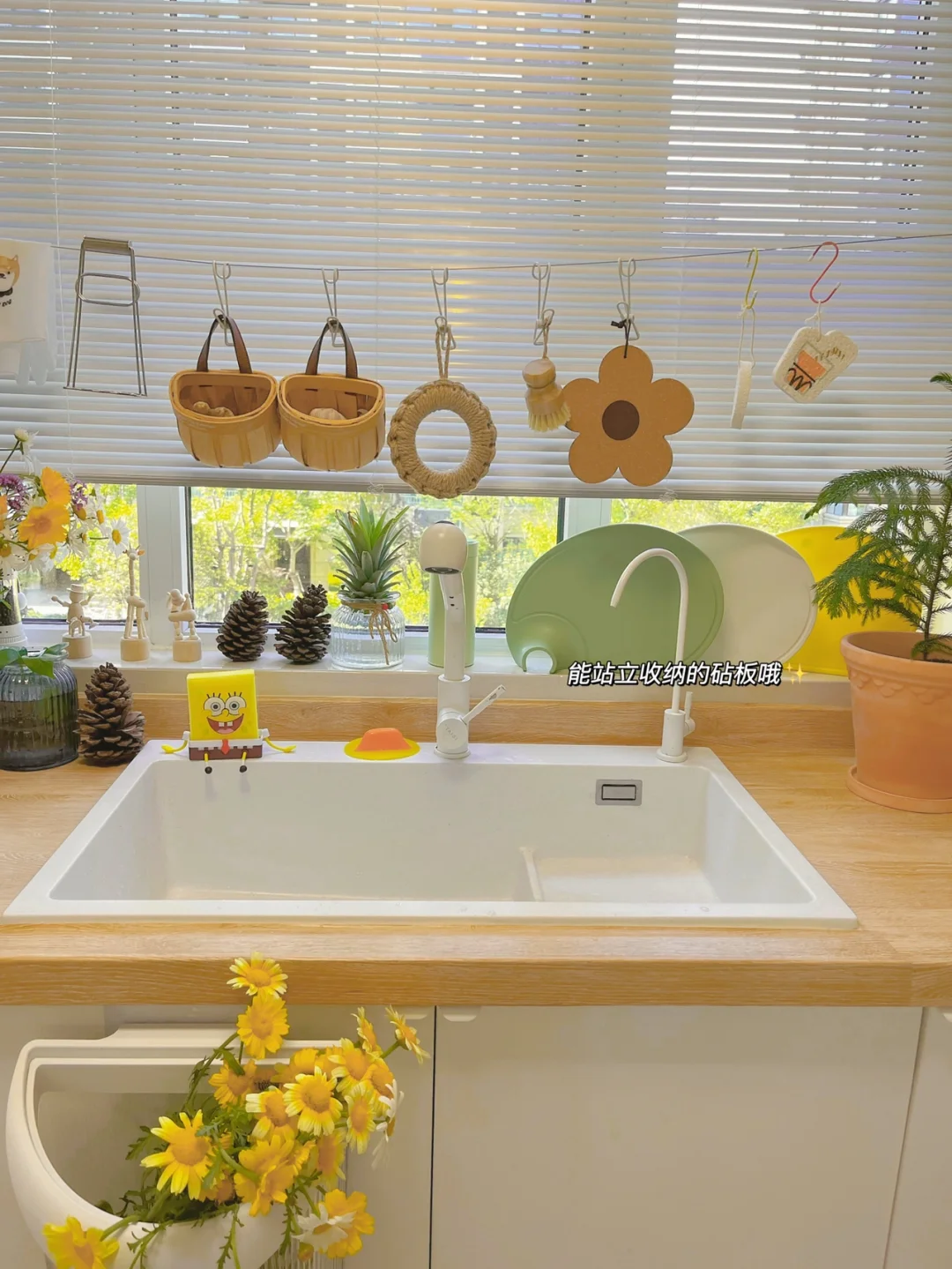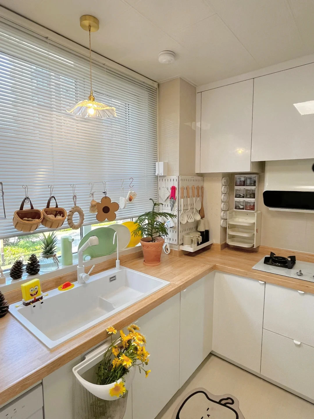 因为是精装修交付,花了2000💰换掉了原来的柜门,又花了50💰贴完了厨房的台面,瞬间变成了心心念念的原木风小厨房,好爱哈哈!
