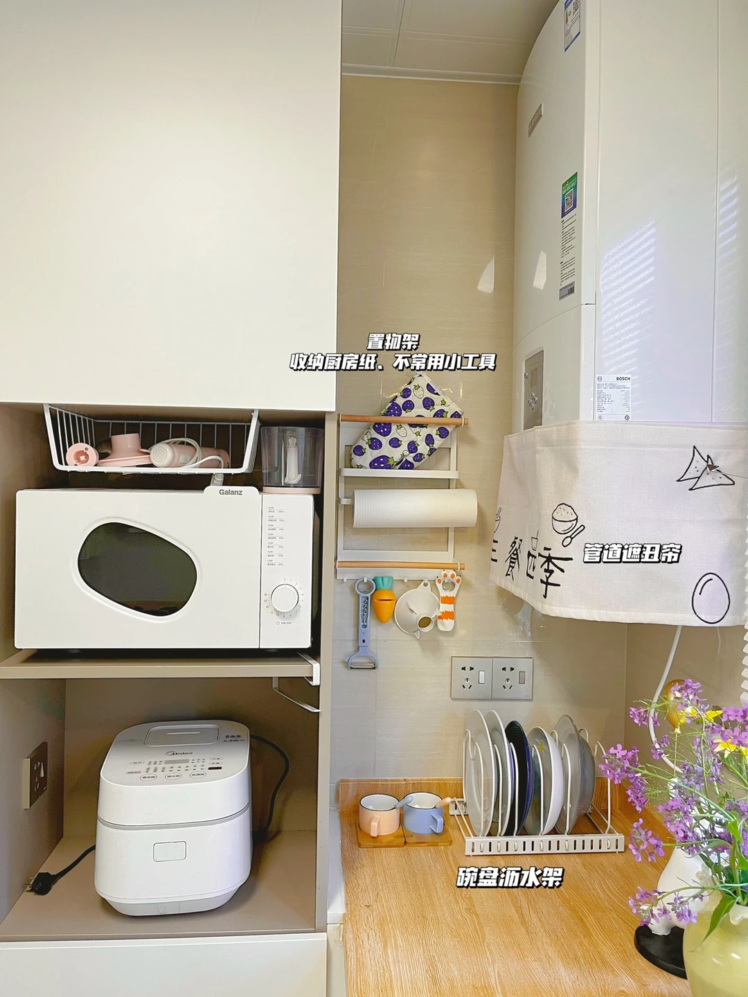 原来厨房左侧是预留的冰箱位,我改成了一组高柜,用于放闲置的锅具、小家电,厨房的收纳空间一下子就够了!
