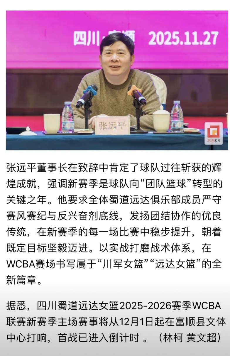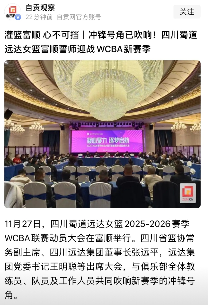 三是,因为四川女篮的投资人张远平先生是自贡富顺人,所以这一次回归到自贡,当然是为了给父老乡亲带来一项福利;毕竟一个县城,能举办中国女子篮球联赛,也是一件有利好的事情。
