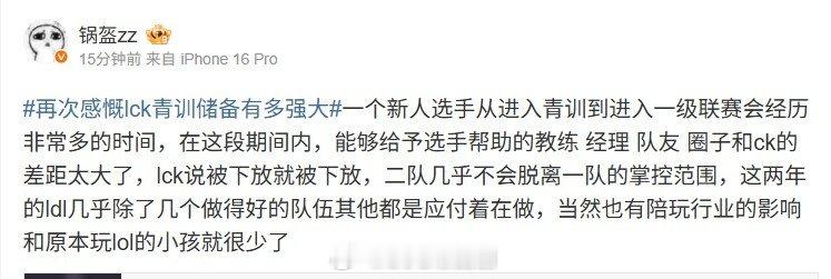 锅盔谈LCK青训:二队几乎不会脱离一队掌控 这两年LDL基本都应付今日T1青训上单Guardian登顶韩服,前IG经理锅盔谈LCK青训:一个新人选手从进入青训到进入一级联赛会经历非常多的时间,在这段期间内,能够给予选手帮助的教练 经理 队友 圈子和ck的差距太大了,lck说被下放就被下放,二队几乎不会脱离一队的掌控范围,这两年的ldl几乎除了几个做得好的队伍其他都是应付着在做,当然也有陪玩行业的影响和原本玩lol的小孩就很少了NIP官宣全员离队T1上单登顶韩服英雄联盟S15