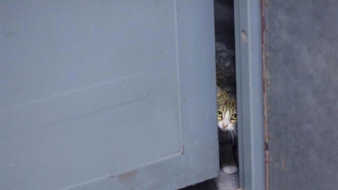 太可怜了!这天天气很好,一位小姐姐在自家院子里晒太阳,突然看到一只可怜的流浪猫跑