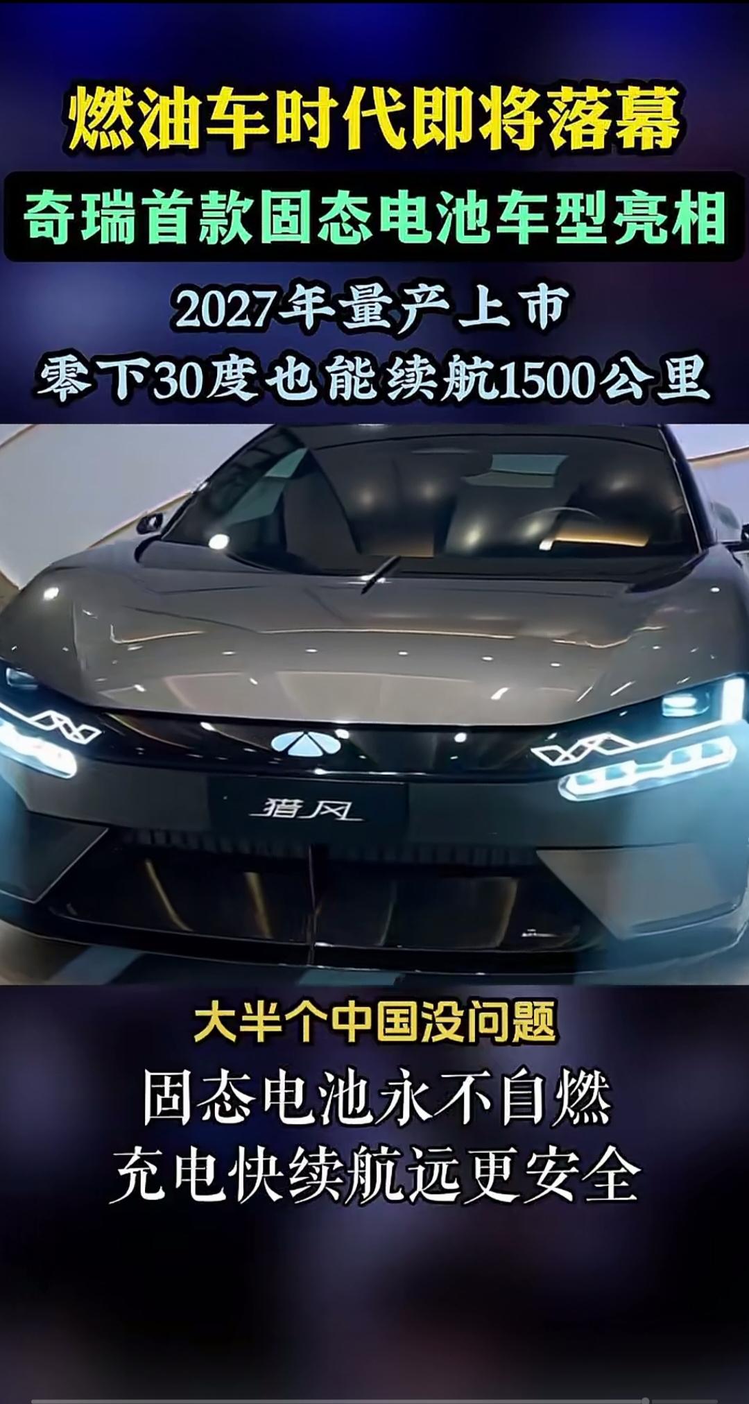如果奇瑞在2027年真的能量产全固态上市。 那么换电、增程、燃油车、还有插混就会被快速淘汰。 这款零下30度也能1500公里续航的纯电全固态电池。 如果价格能做到在20万以内。 一定会是iPhone4S那种划时代,淘汰塞班系统的存在。 1500公里,哪怕是打75折,1500*0.75=1125,也是司机的生理极限了。 因此我觉得现在想换车的朋友,如果你的车还能开,就尽量再等等。 买车 新能源汽车
