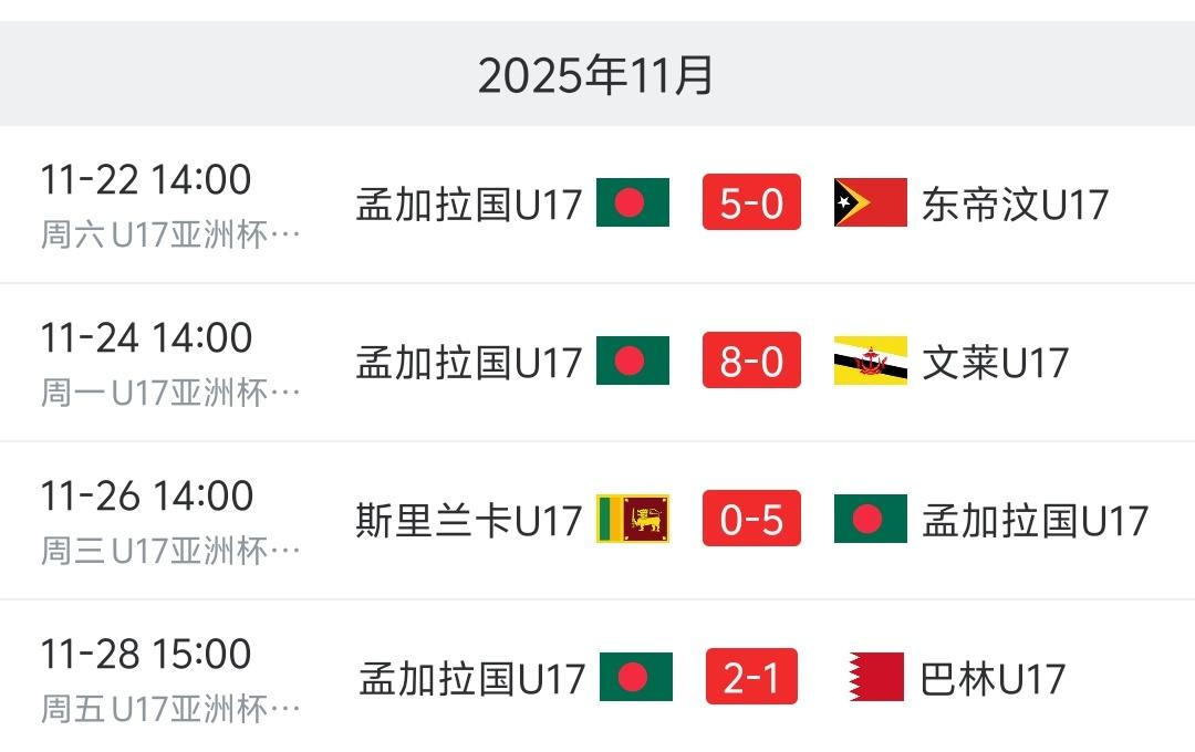 国足U17今晚迎战小组最强对手孟加拉国队,此前国足4战全胜打进38球没有丢球,而孟加拉国队打进20球仅丢了 1个球,所以孟加拉进攻也是不错,防守也不错,我们得谨慎面对!