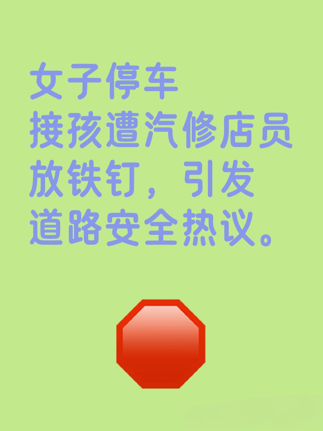 女子临时停车接孩子,竟遇汽修店员在其轮胎下放铁钉,这一事件引发了公众对道路安全的关注和热议。 近日,湖北省武汉市发生一起令人震惊的事件,一位女子在接孩子临时停车时,发现汽修店员在其轮胎下秘密放置铁钉。该女子在目睹铁钉被放下的全过程后,立即质问对方,但店员矢口否认。直到警方介入,店员才被迫道歉,态度嚣张,令人愤慨。此类行为不仅威胁道路交通安全,还可能引发严重事故。依据相关法律规定,这种破坏交通工具安全的行为将受到法律严惩,涉嫌寻衅滋事、故意毁坏财物等罪名。此事再次提醒公众,任何损害他人财产的行为都将受到法律严惩,同时,商家也不能滥用权力干扰他人正常生活。此事件也引起了社会各界对道路管理及安全维护的关注,呼吁相关部门加强监管,保障市民出行安全。